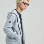 Paris Saint-Germain F.C.公式ライセンスのテックフリースジップパーカー。胸元に施されたEMBロゴ刺繍がシンプルながら存在感を放ち、スポーツミックスやストリートスタイルに馴染みます。同シリーズのパンツと合わせて、セットアップでの着用も可能。タウンユースからリラックスタイムまで幅広く活躍します。