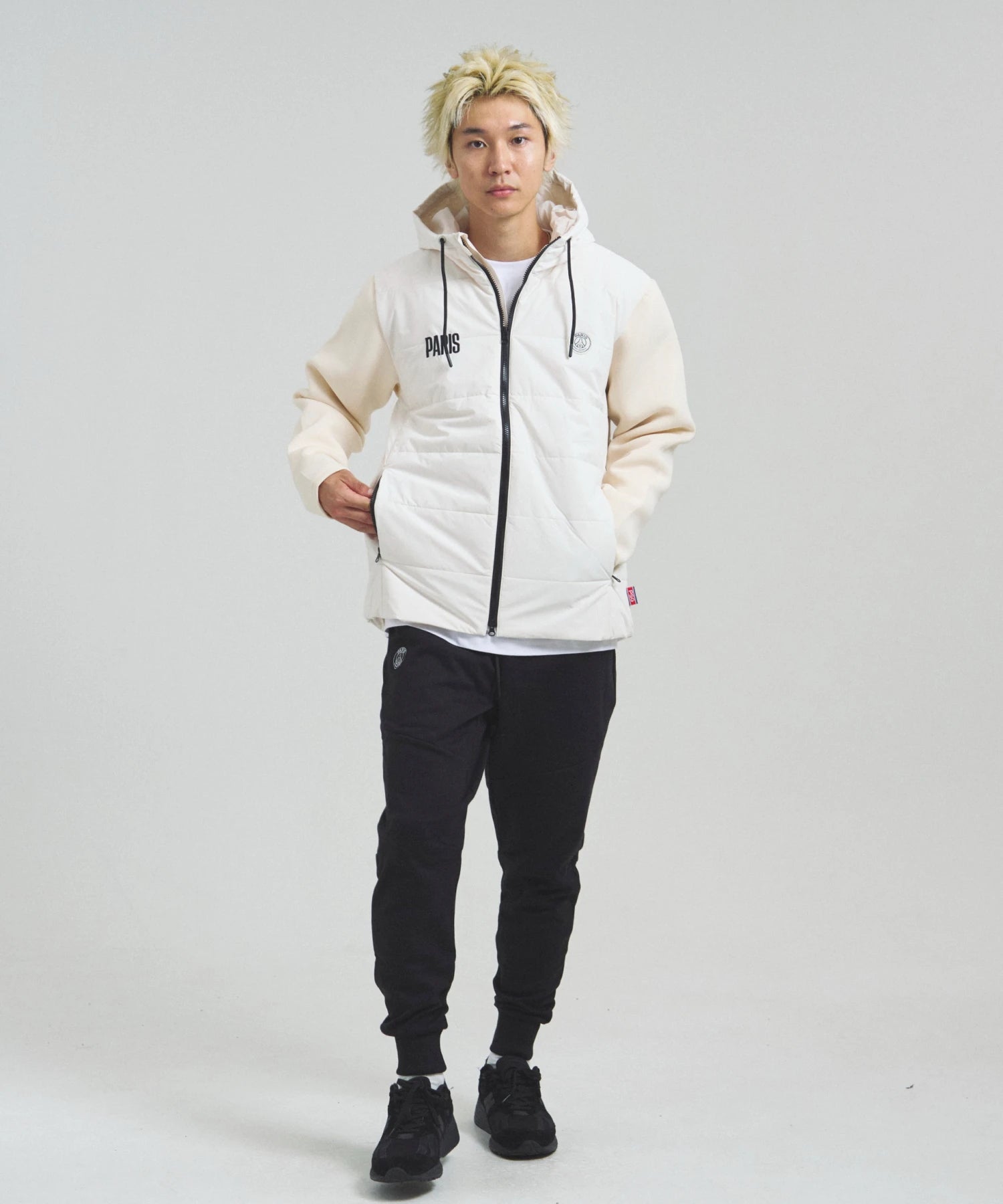 同素材のパーカー(別売り)と合わせて、セットアップコーデもおすすめ。532575139005 パリサンジェルマン テックフリース・EMB LOGO-ZIPパーカー