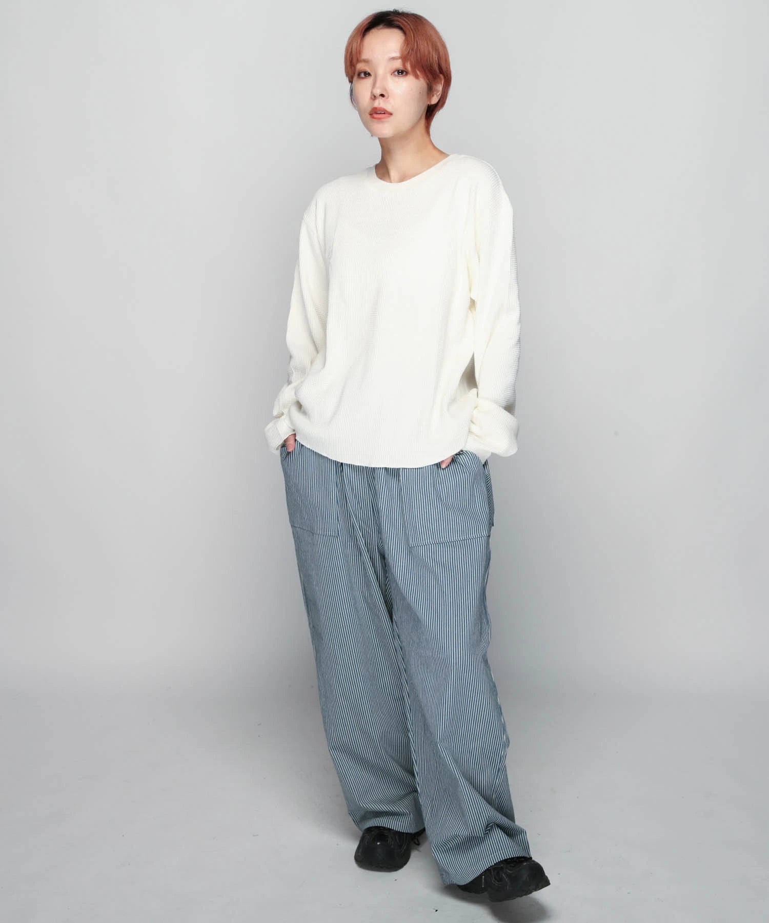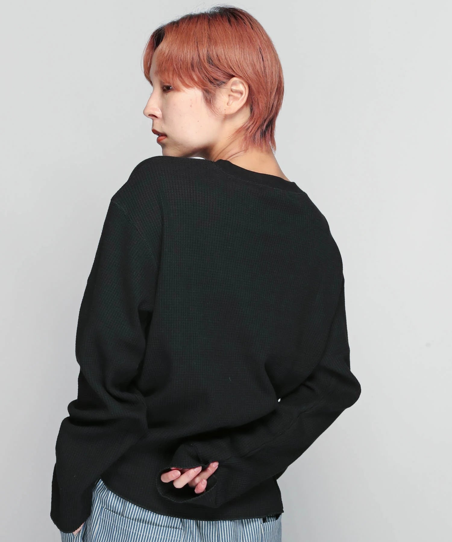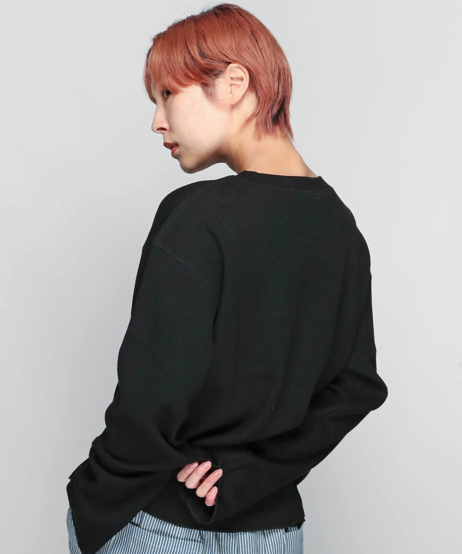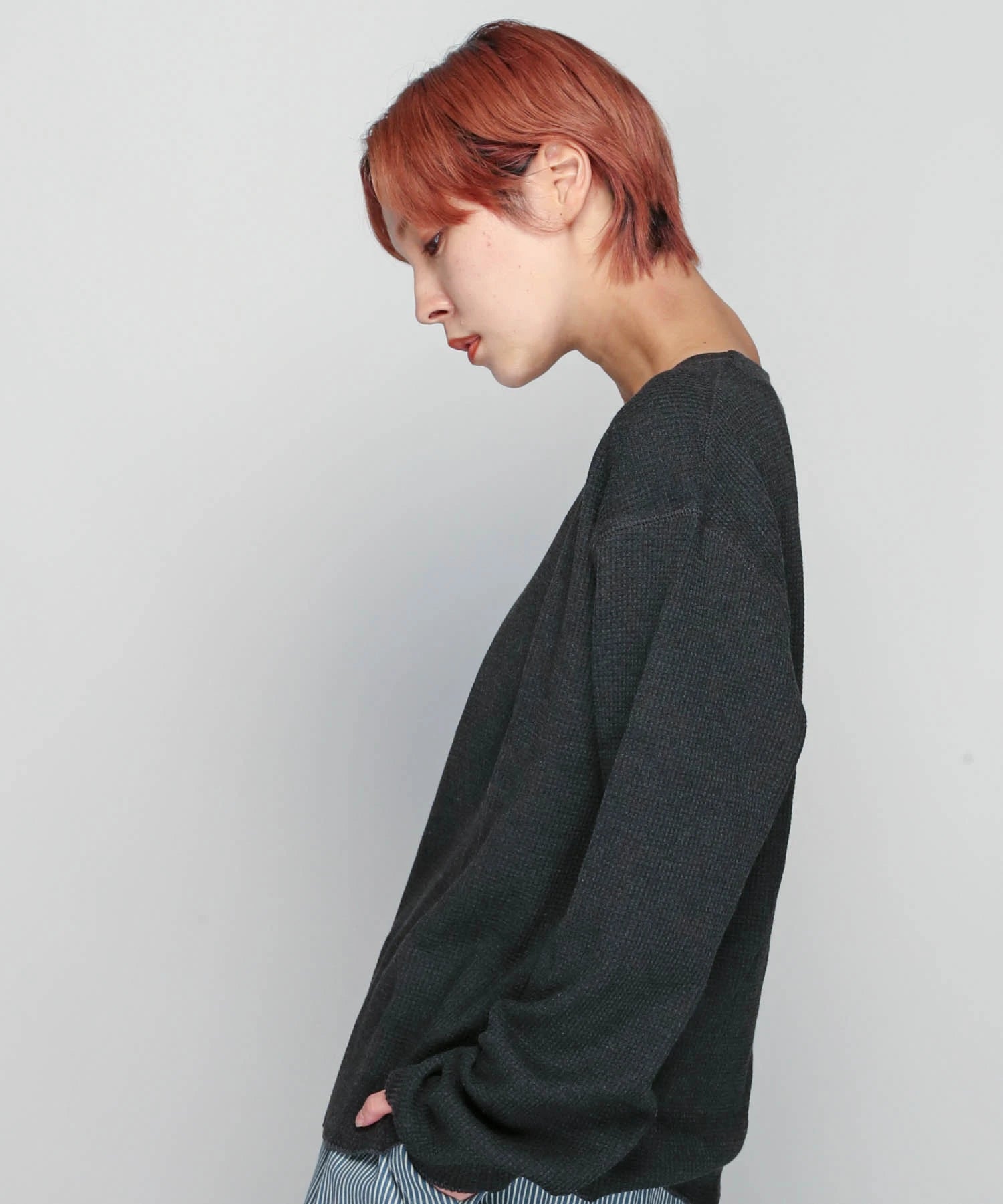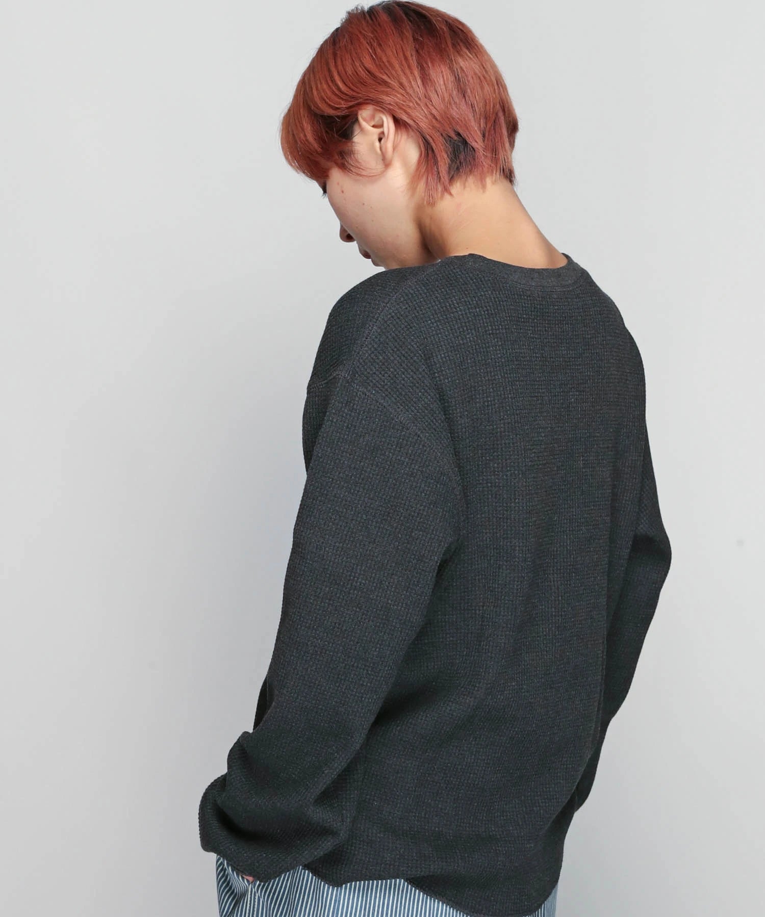立体感のあるワッフル素材で仕立てた、ショート丈ロングスリーブTシャツが登場。凹凸のあるワッフル編みが、シンプルながらも存在感のある表情を演出。ショート丈のボックスシルエットが、トレンド感と抜け感を両立し、レイヤードスタイルにも最適です。袖はやや長めに設計されており、ゆるさとモード感を兼ね備えたバランスに。裾のドロップ感が、パンツとの相性を高め、スタイリングに奥行きを与えます。カラーはホワイト・チャコール・ブラックの3色展開。どれもベーシックながら、素材の表情で差がつく仕上がり。デニムやカーゴ、スラックスなど、幅広いボトムスと好相性です。一枚でもインナー使いでも活躍する万能トップスとして、シーズンレスに重宝するアイテムです。