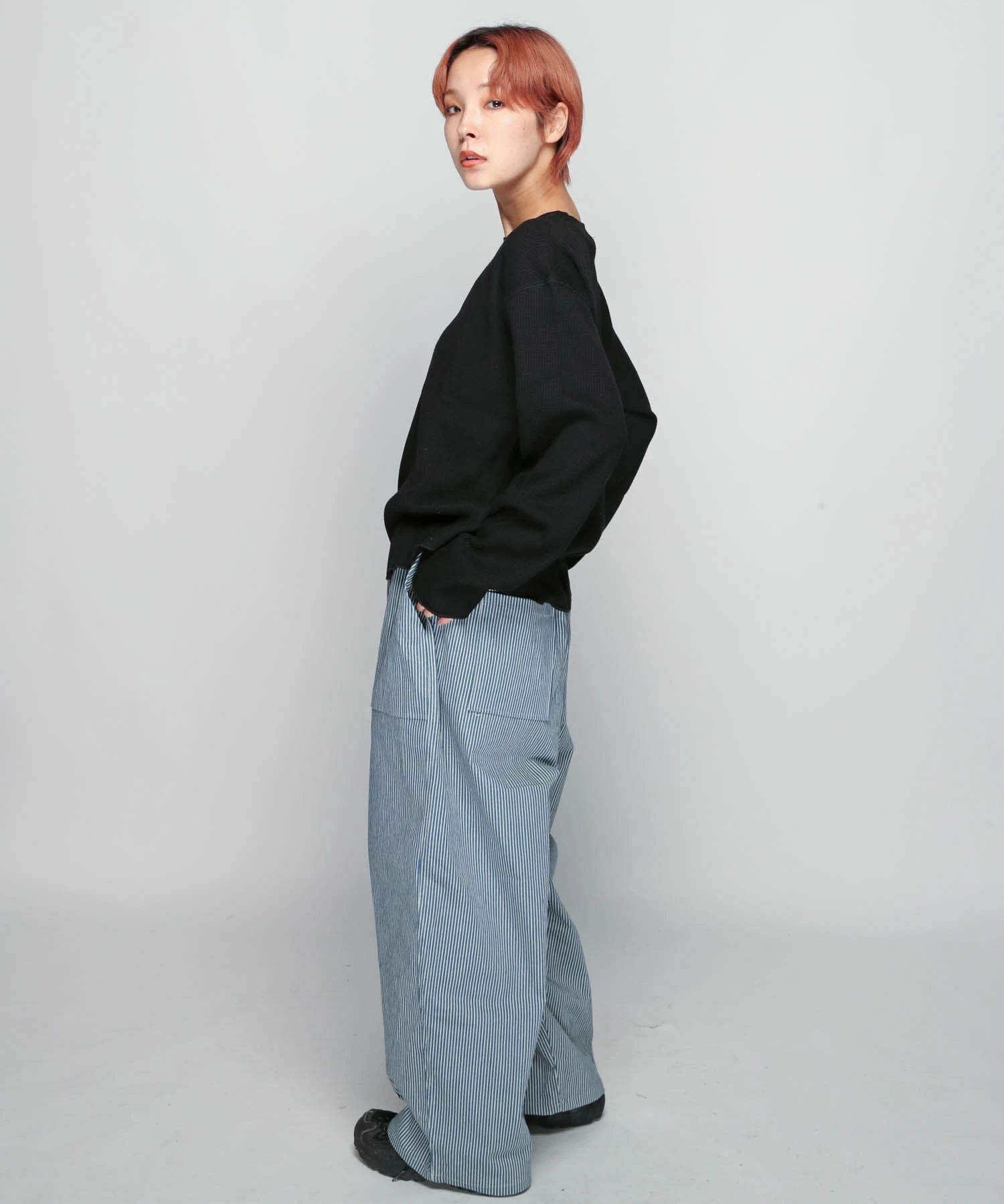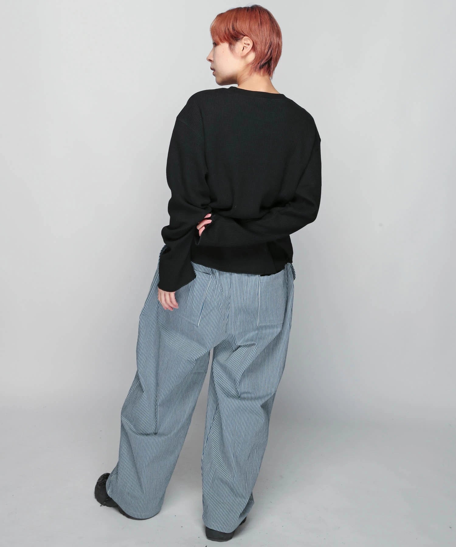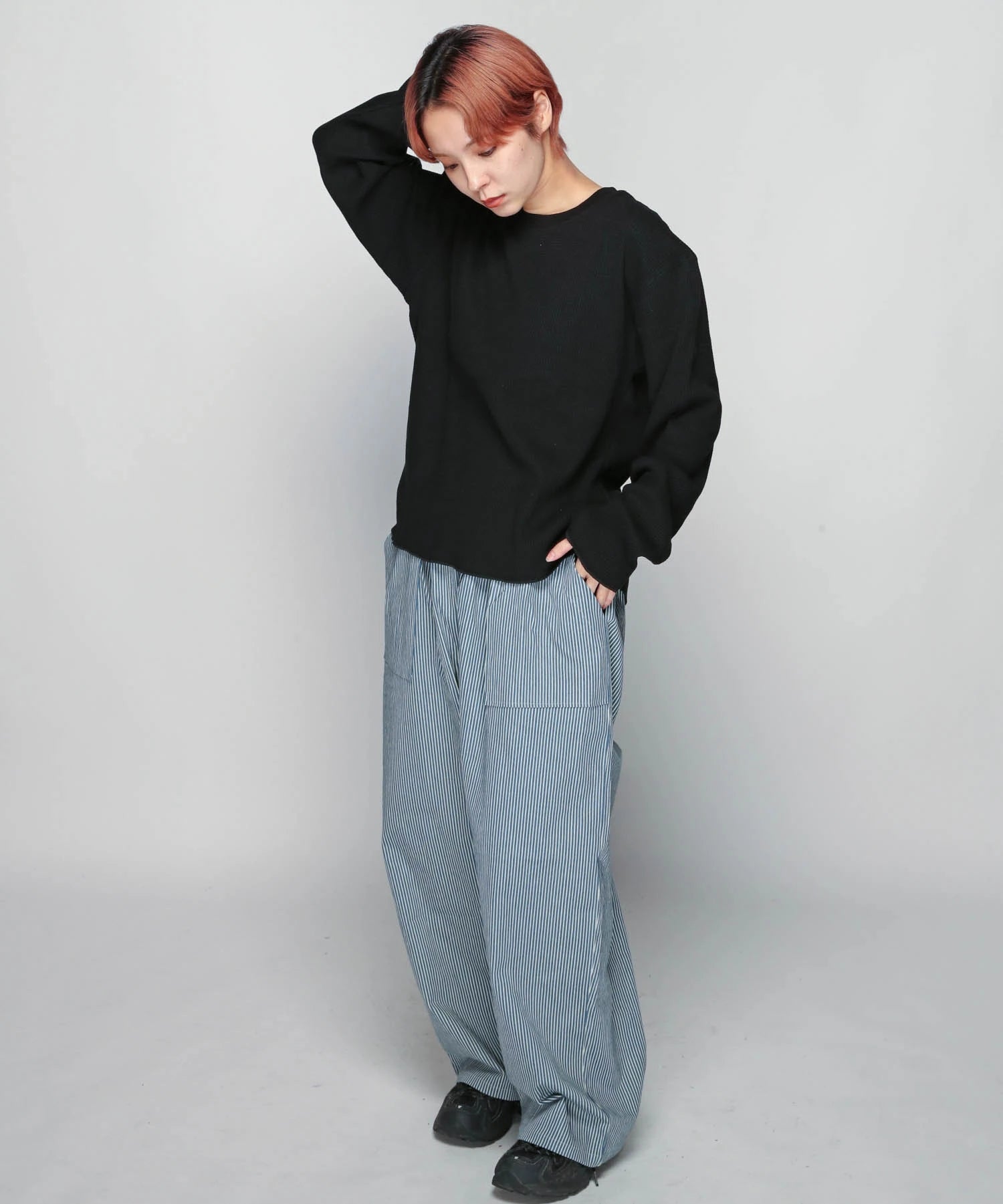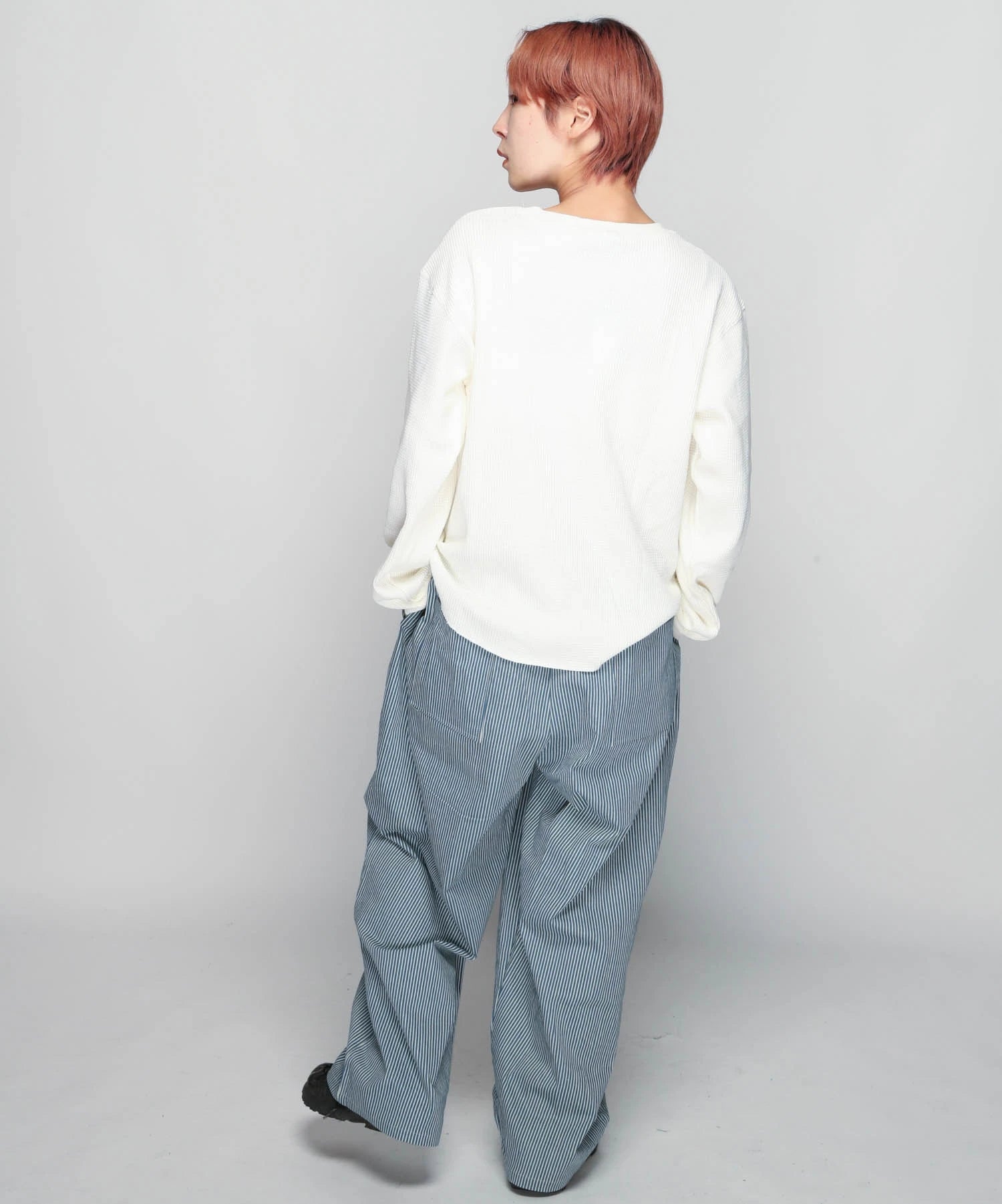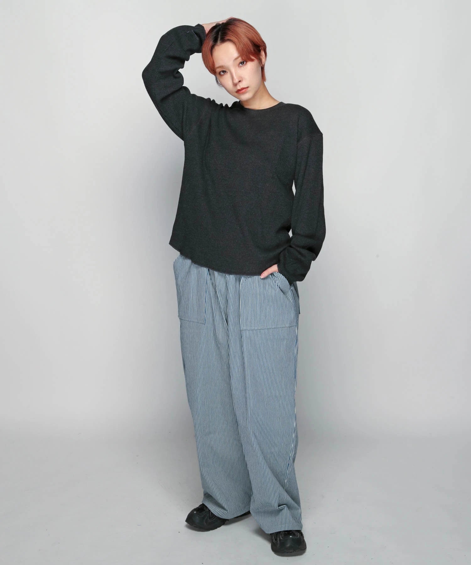 立体感のあるワッフル素材で仕立てた、ショート丈ロングスリーブTシャツが登場。凹凸のあるワッフル編みが、シンプルながらも存在感のある表情を演出。ショート丈のボックスシルエットが、トレンド感と抜け感を両立し、レイヤードスタイルにも最適です。袖はやや長めに設計されており、ゆるさとモード感を兼ね備えたバランスに。裾のドロップ感が、パンツとの相性を高め、スタイリングに奥行きを与えます。カラーはホワイト・チャコール・ブラックの3色展開。どれもベーシックながら、素材の表情で差がつく仕上がり。デニムやカーゴ、スラックスなど、幅広いボトムスと好相性です。一枚でもインナー使いでも活躍する万能トップスとして、シーズンレスに重宝するアイテムです。