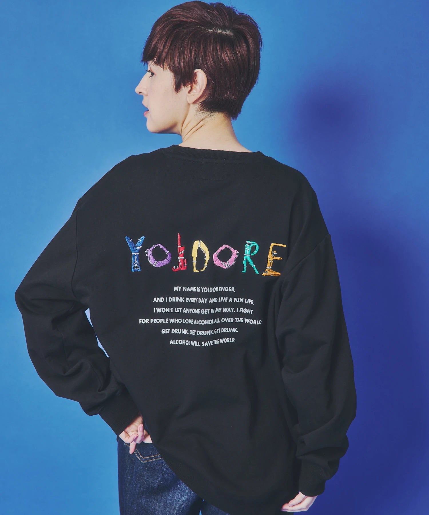 「アルコールは世界を救う」をテーマに、世界中のお酒を愛する人々のために戦う正義のアルコールヒーロー「YOIDORENGER」!毎日楽しくお酒を呑んで平和に生きるよいどれたちの生活を邪魔する奴は許さないぜ!的なメッセージが込められた、実は深めなストーリーを秘めつつもポップでコミカルなデザインがYOIDORERたちの心に響く傑作スウェットです。面白おかしくも、マナーを守ってみんなで平和に呑みましょ!