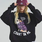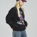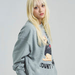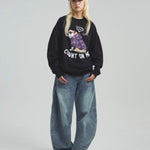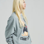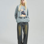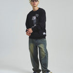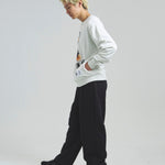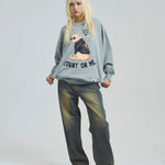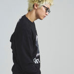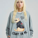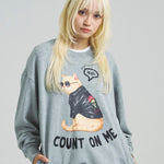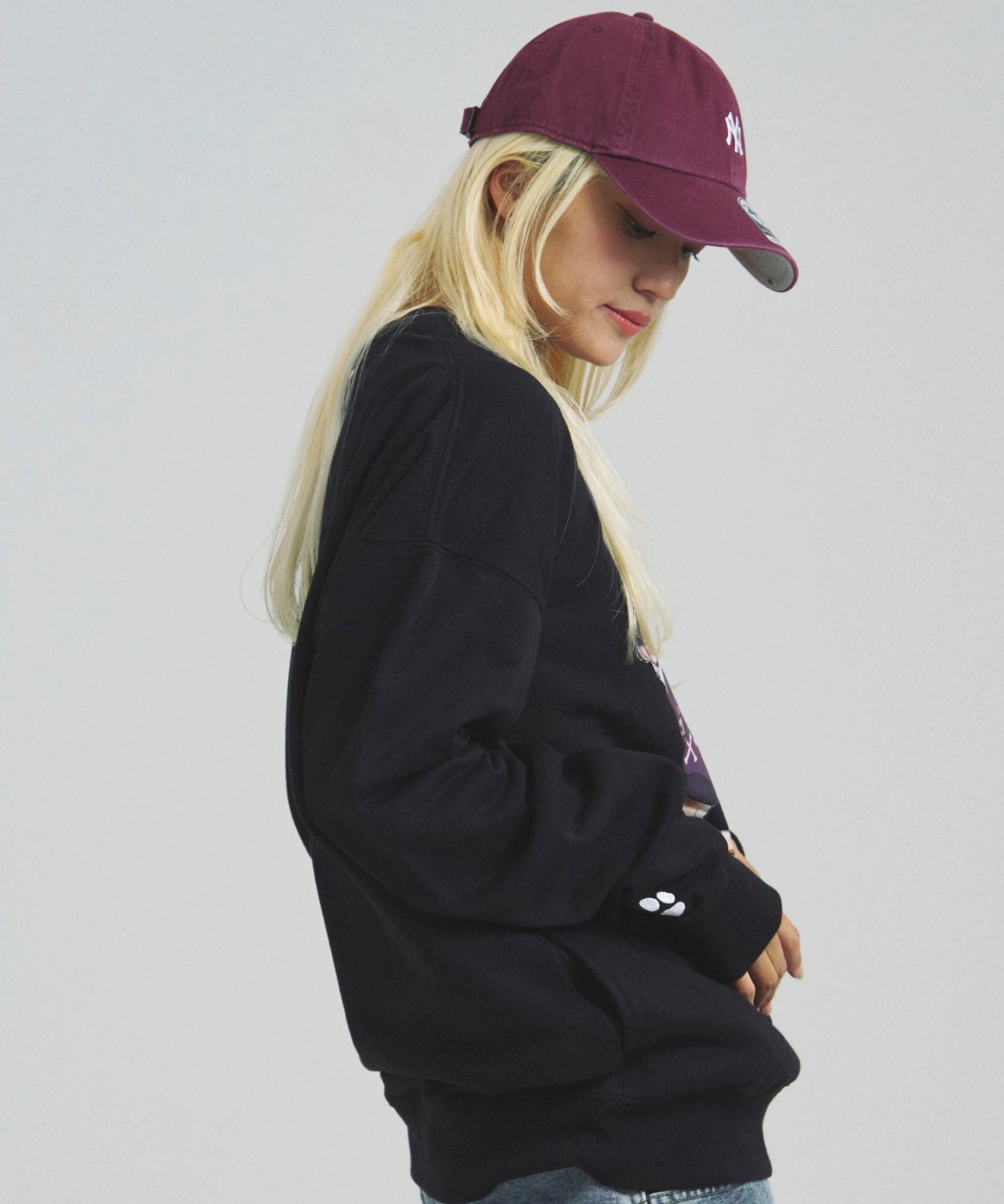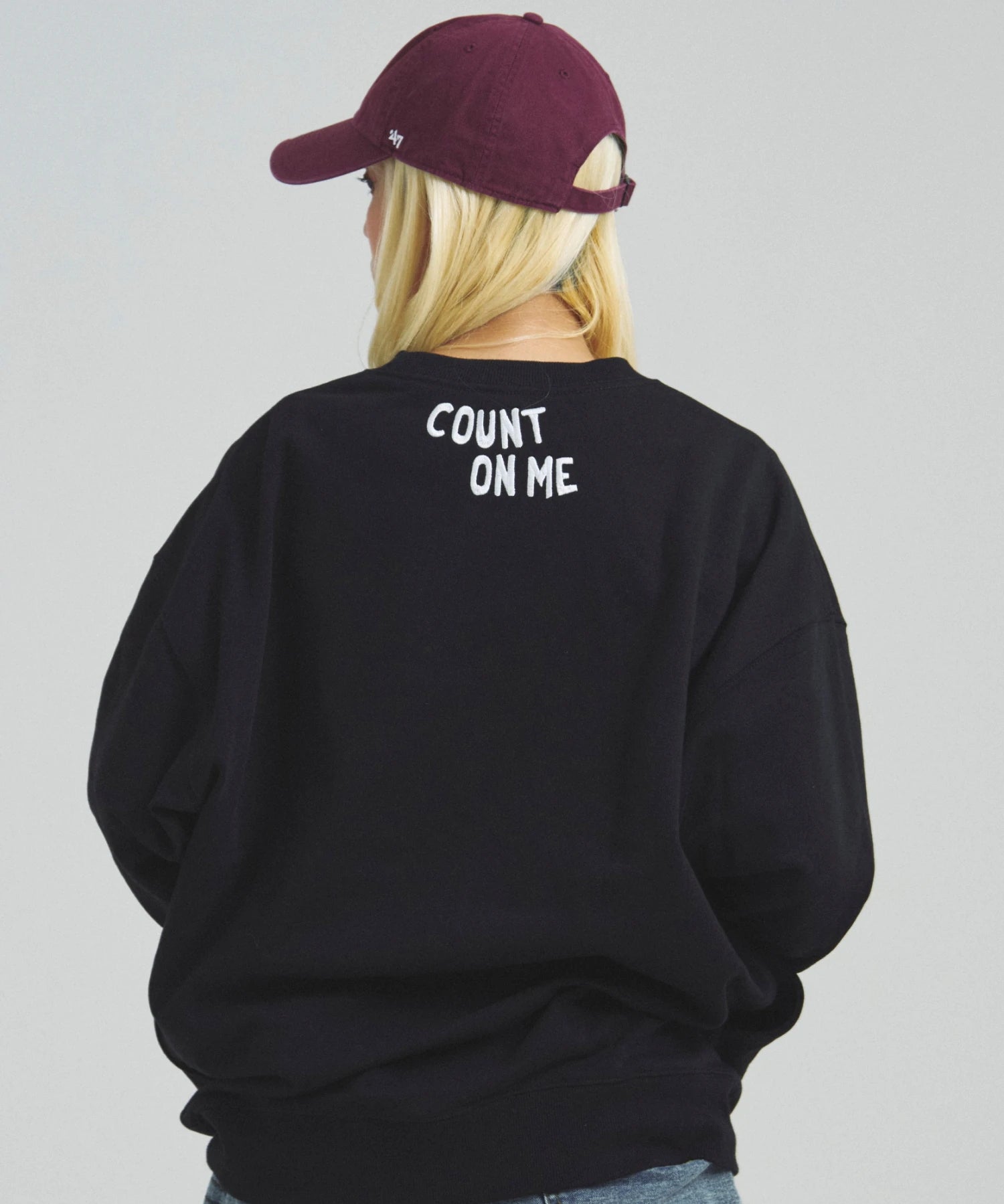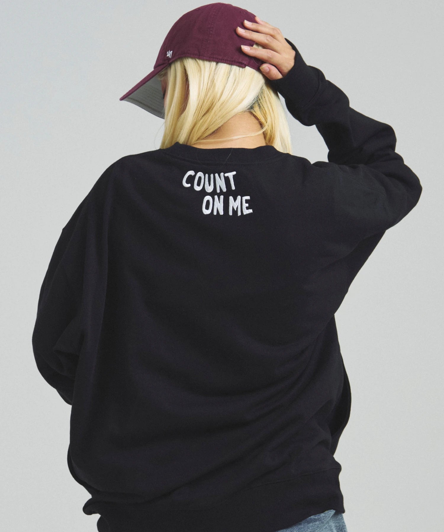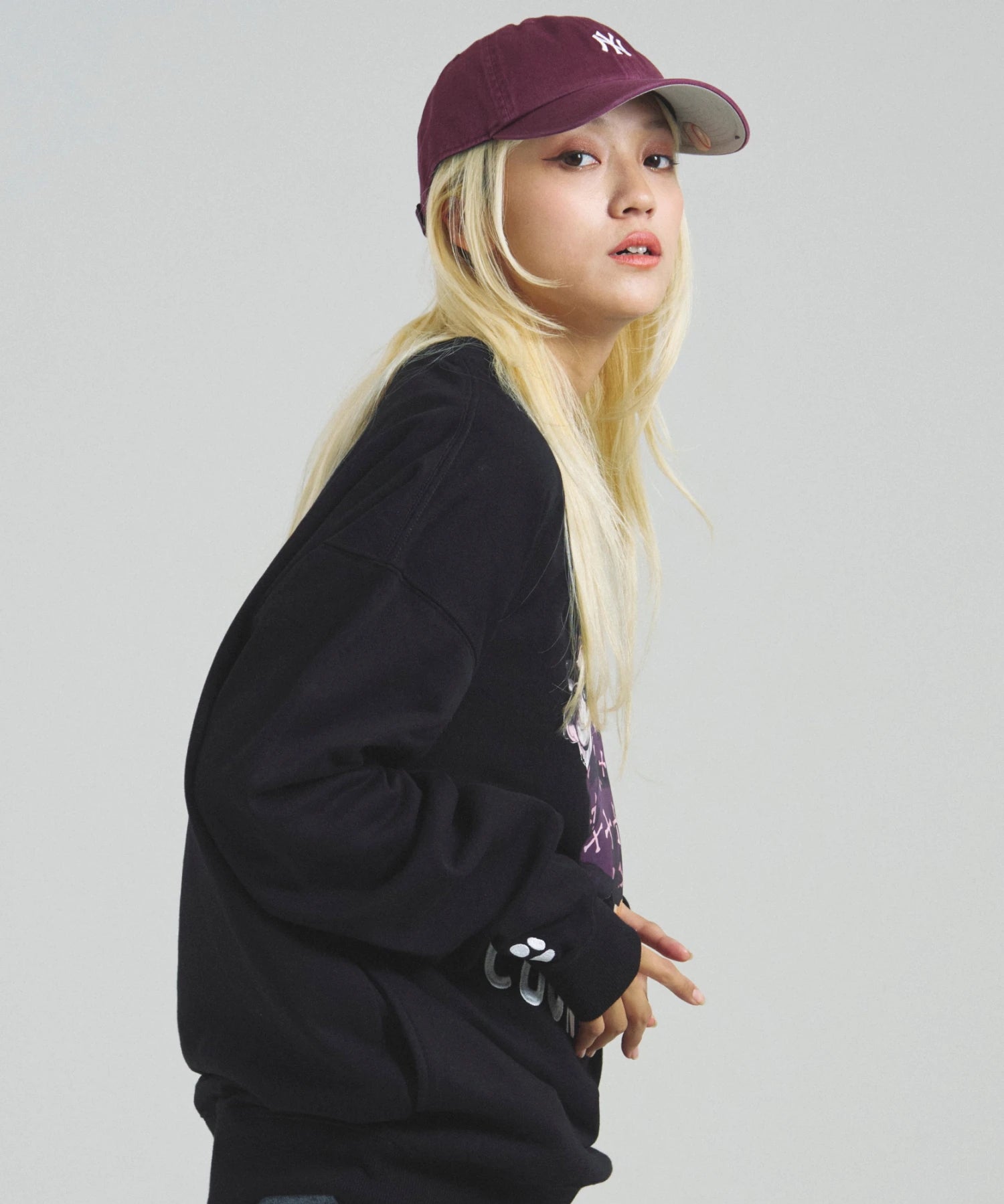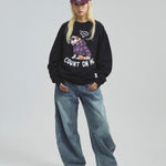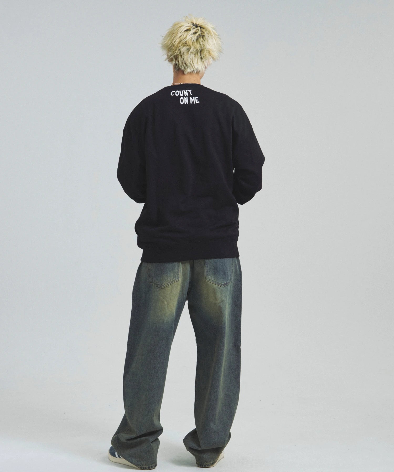 愛らしい犬と猫のグラフィックをあしらったクルースウェット。フロントはユーモアのある大判グラフィックを施し、存在感抜群の仕上がりになっています。背面首元にはシンプルなロゴ刺繍を配置。