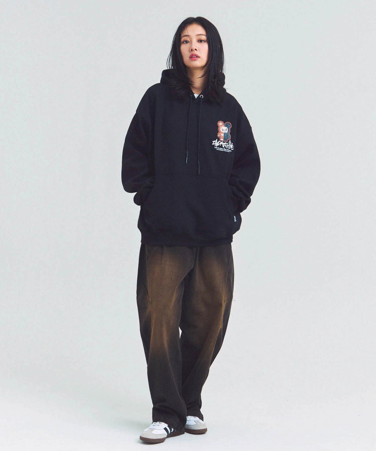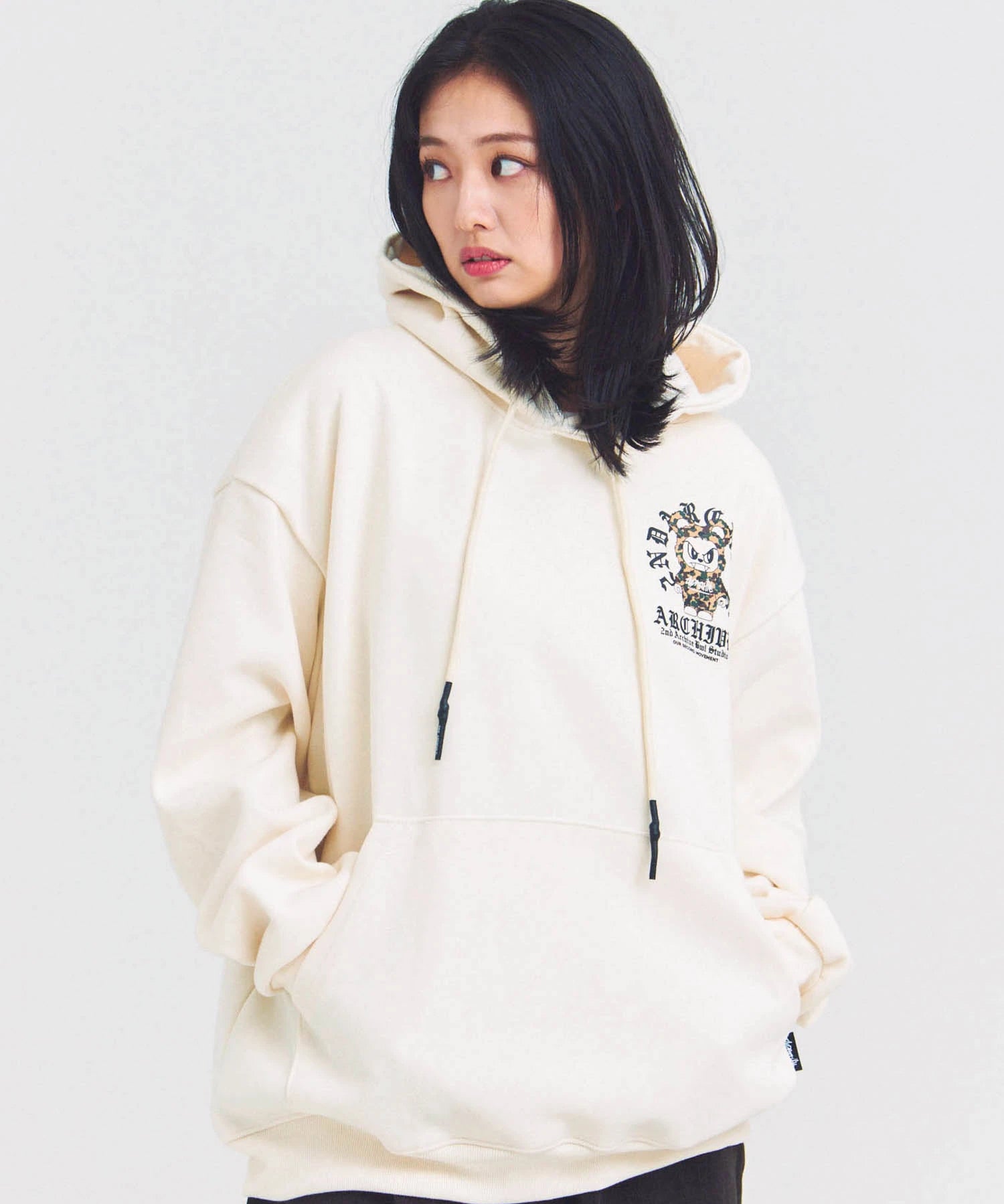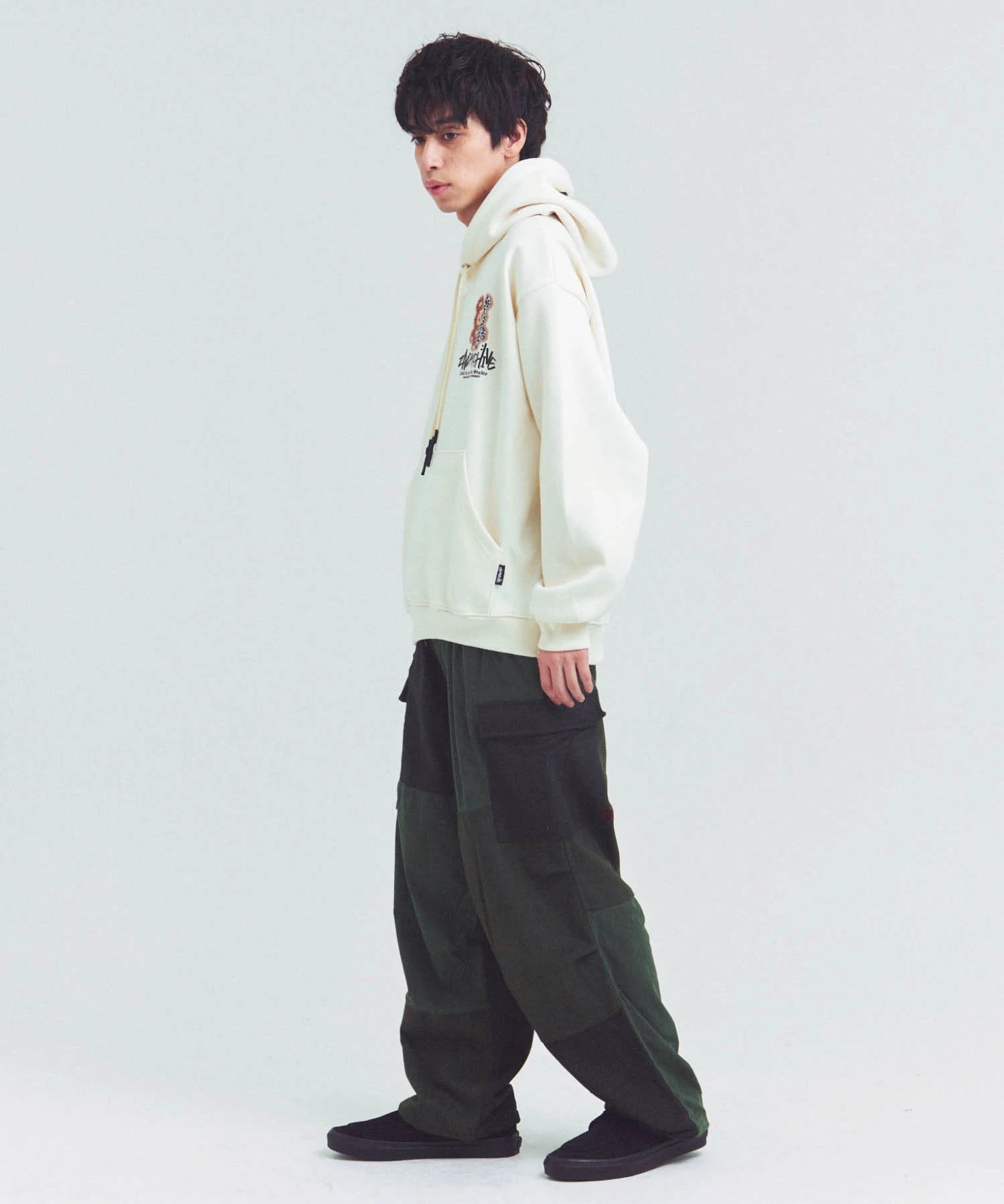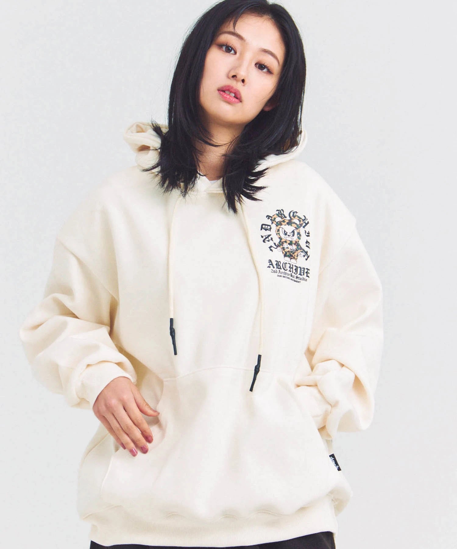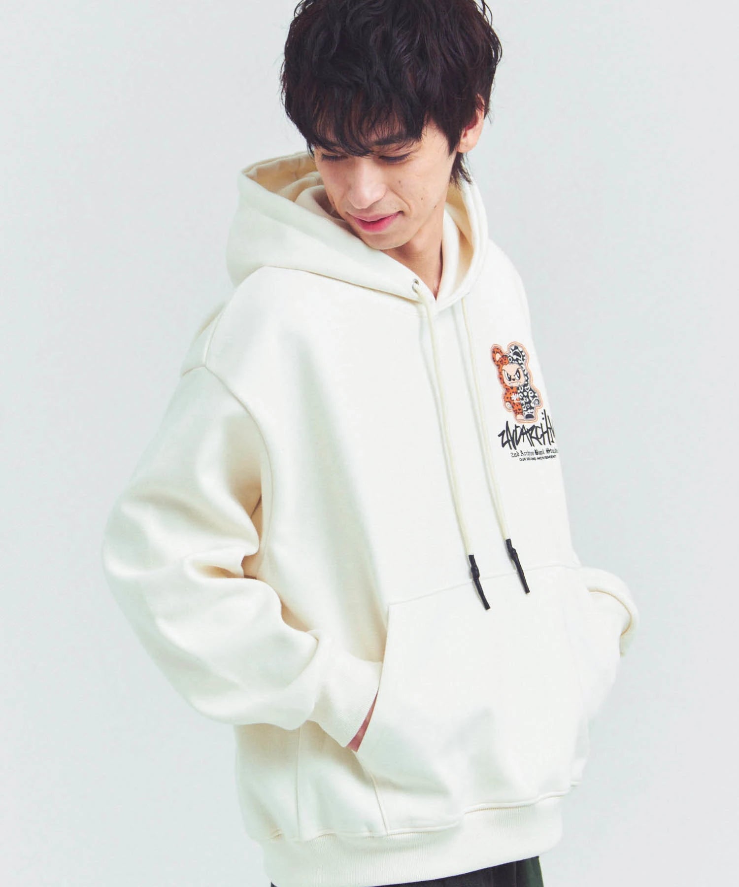 韓国発ストリートブランドらしい大胆なグラフィックをフロントに配したプルオーバーパーカー。