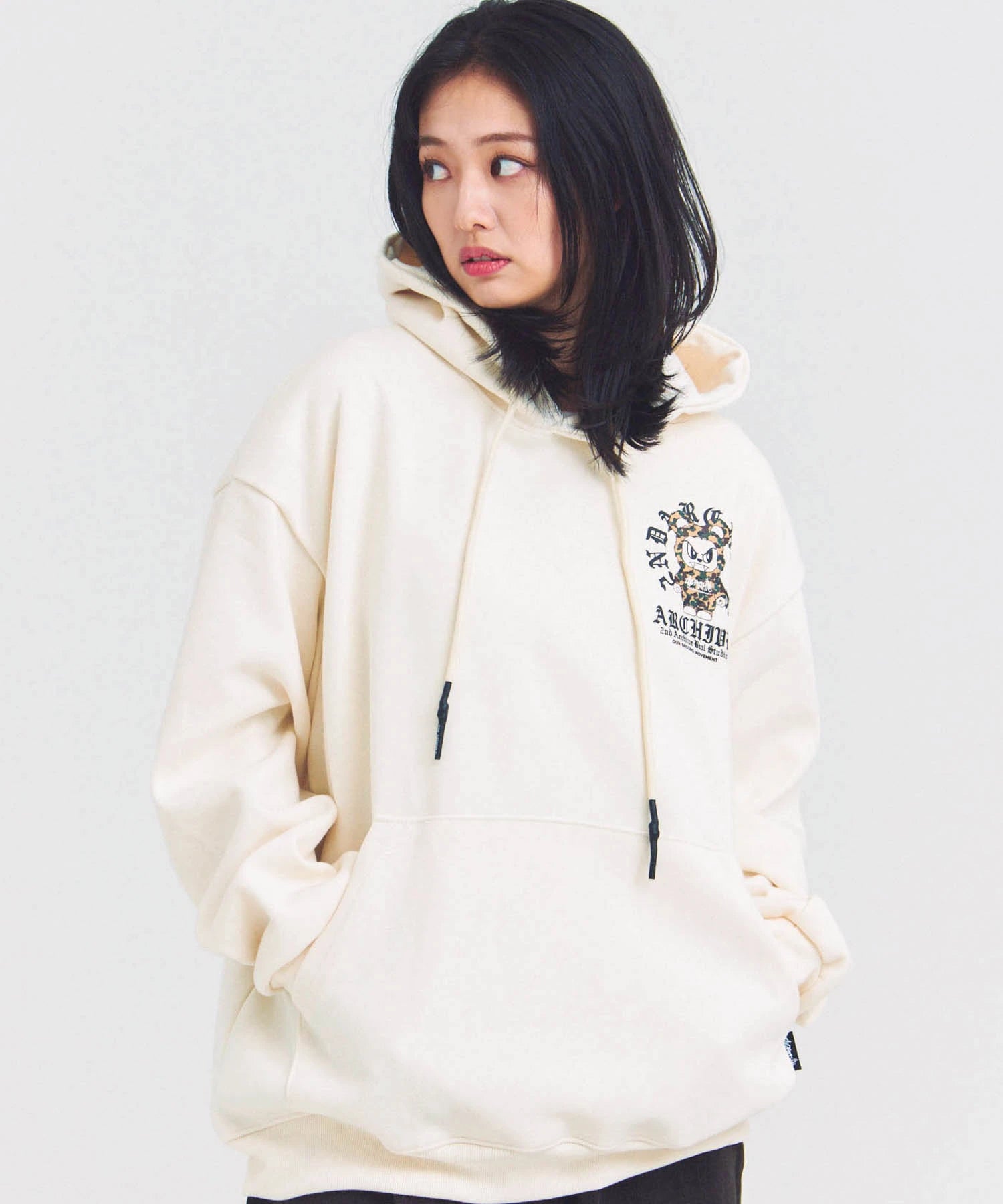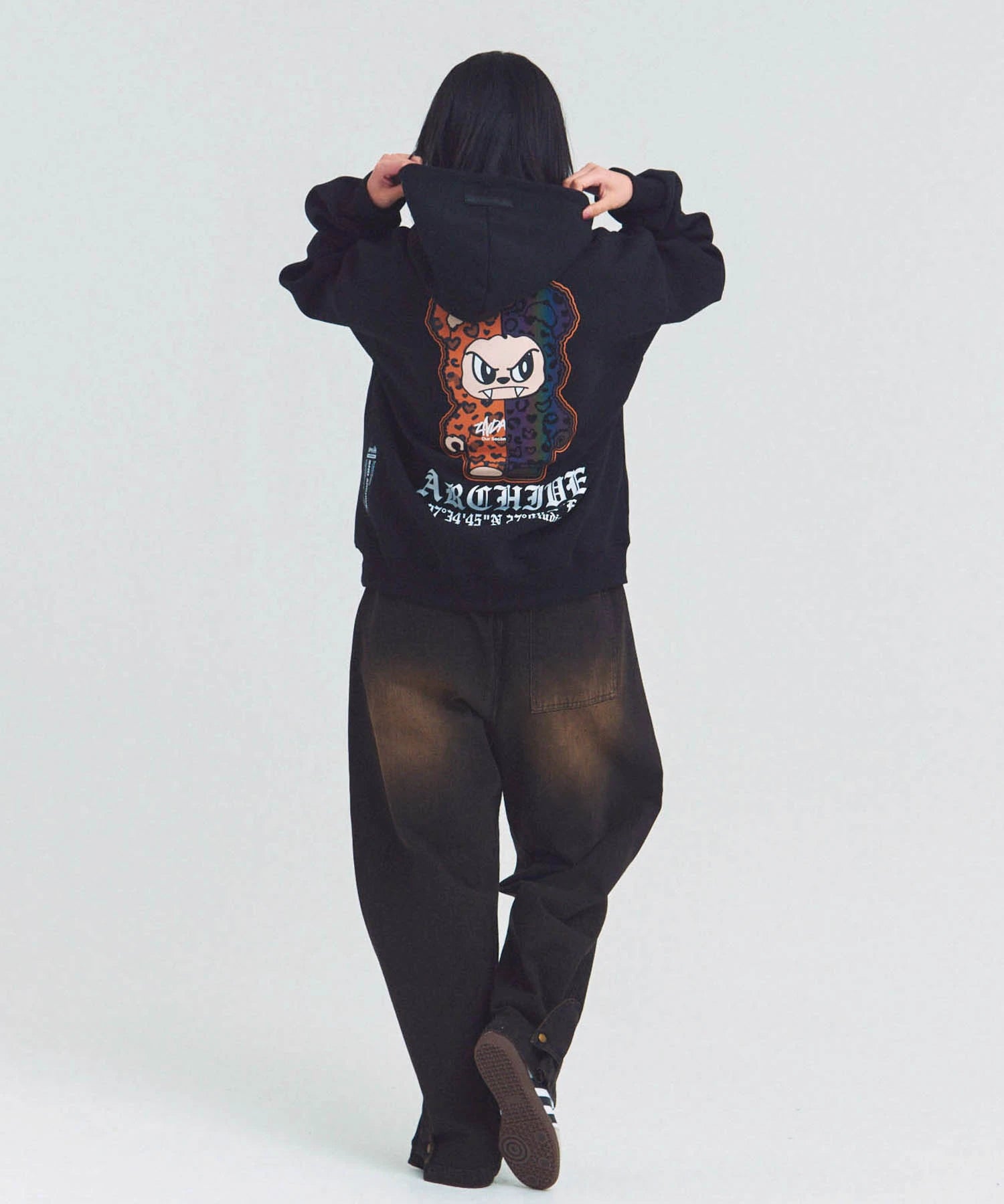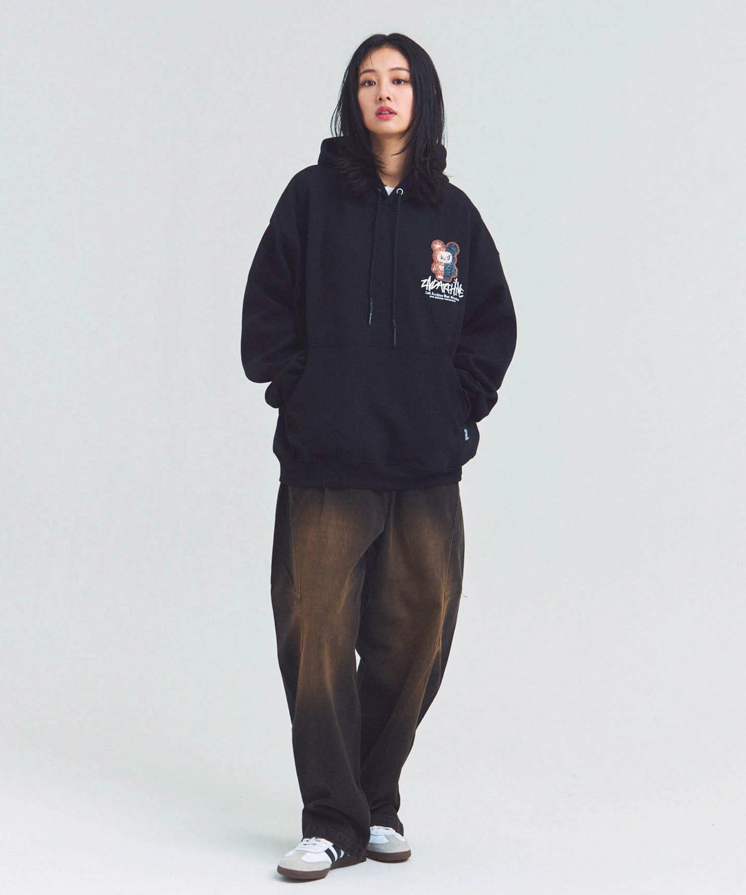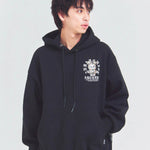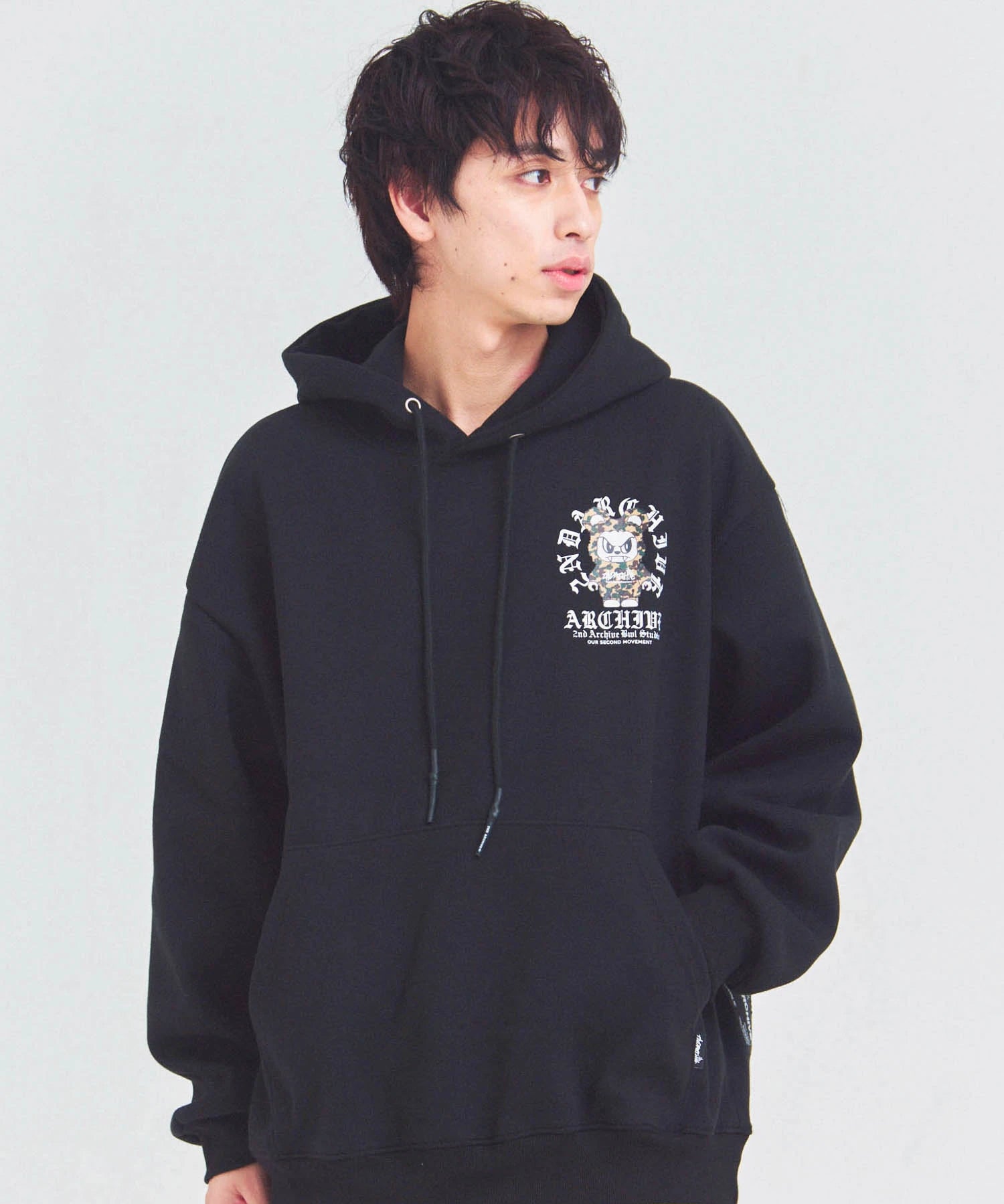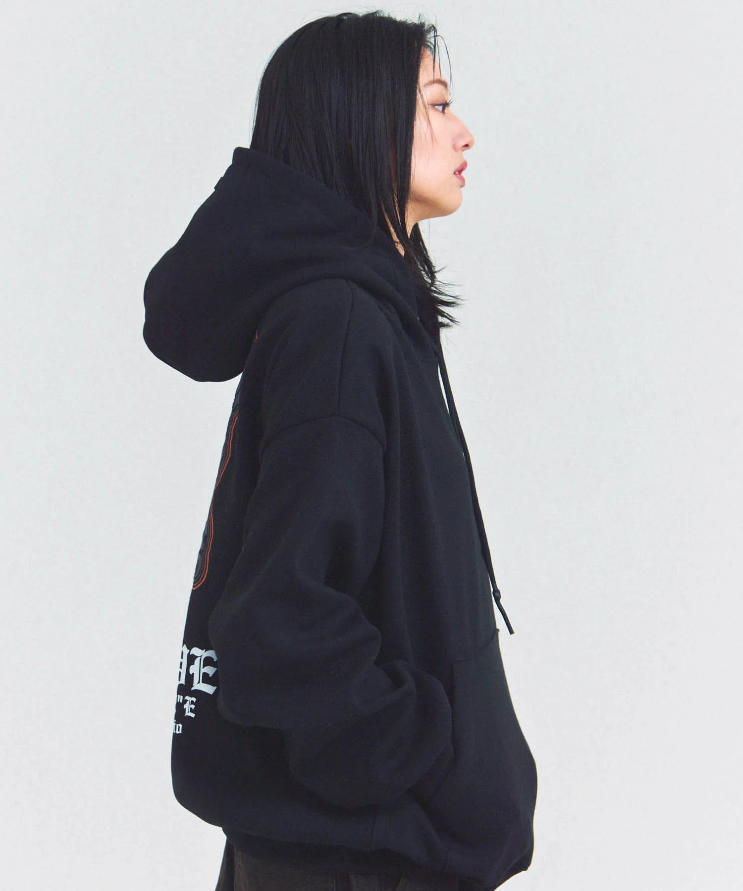韓国発ストリートブランドらしい大胆なグラフィックをフロントに配したプルオーバーパーカー。