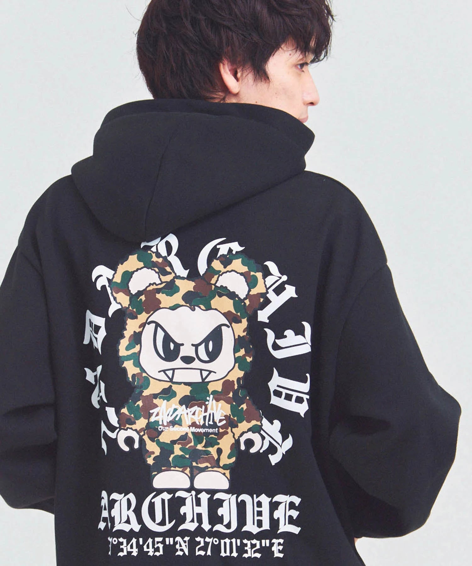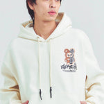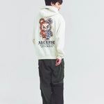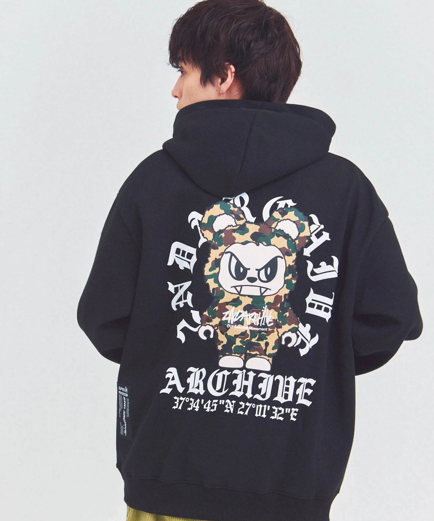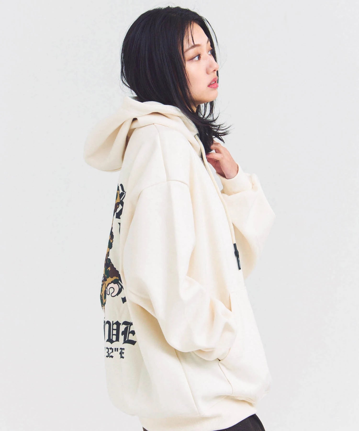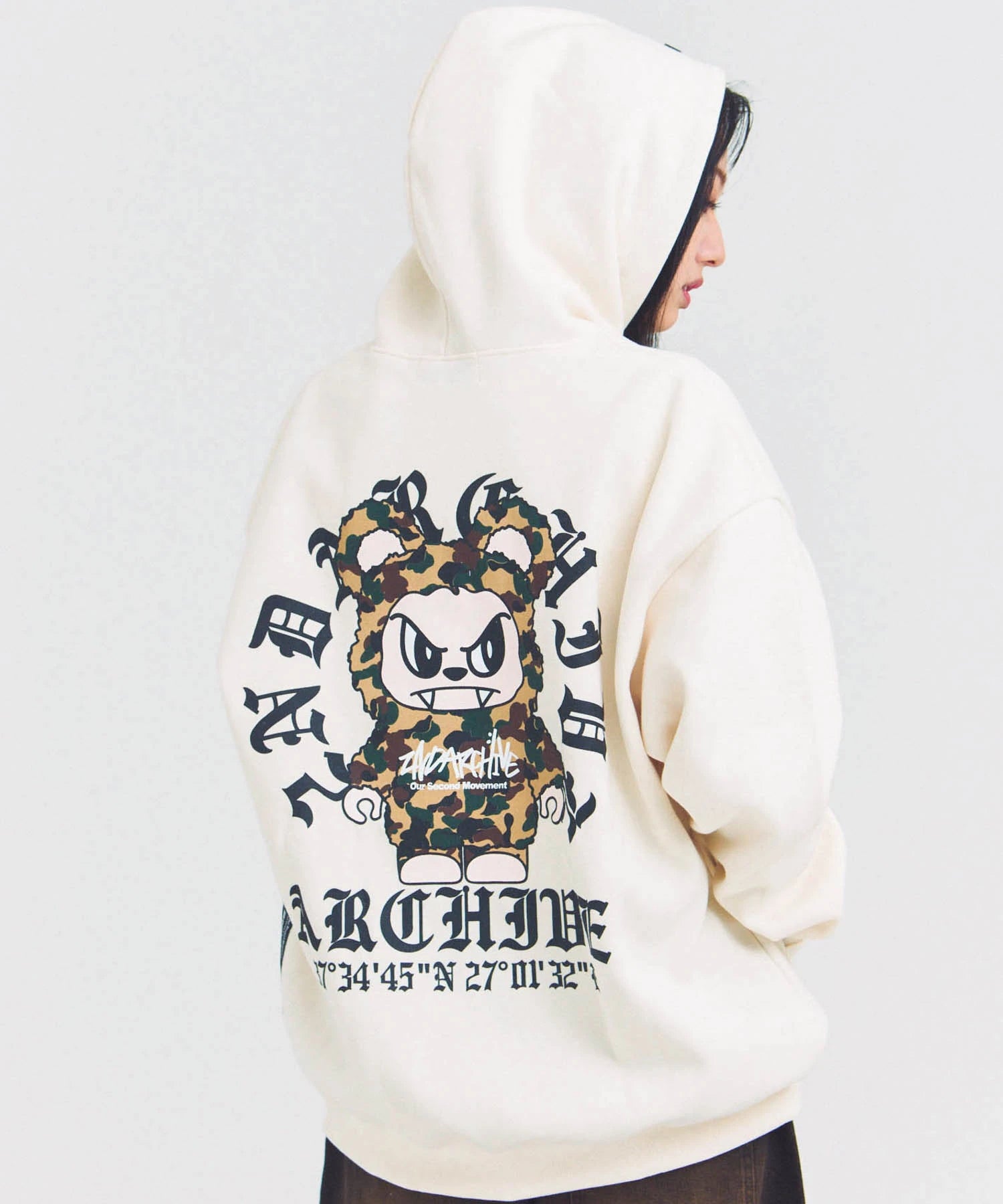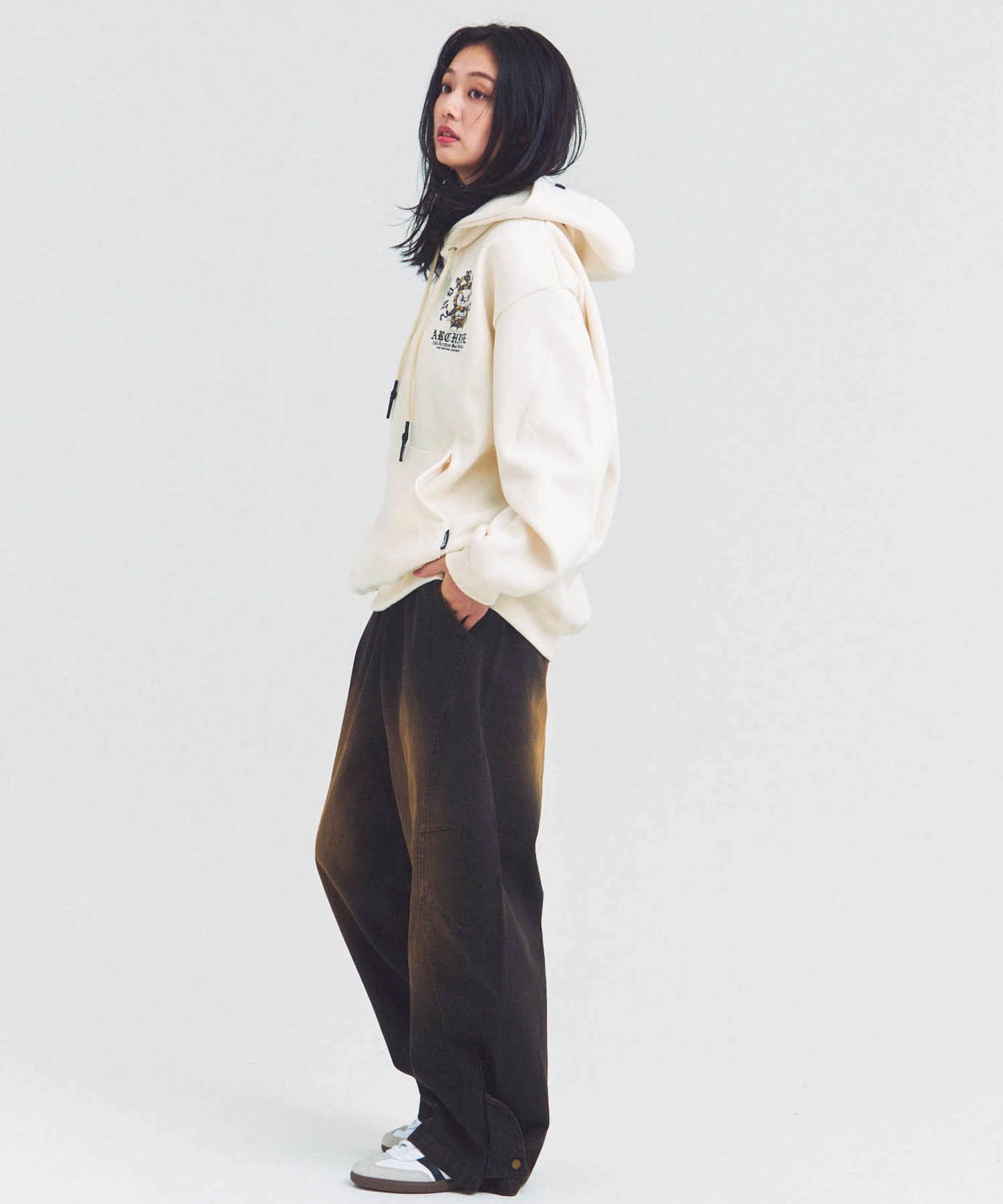 韓国発ストリートブランドらしい大胆なグラフィックをフロントに配したプルオーバーパーカー。