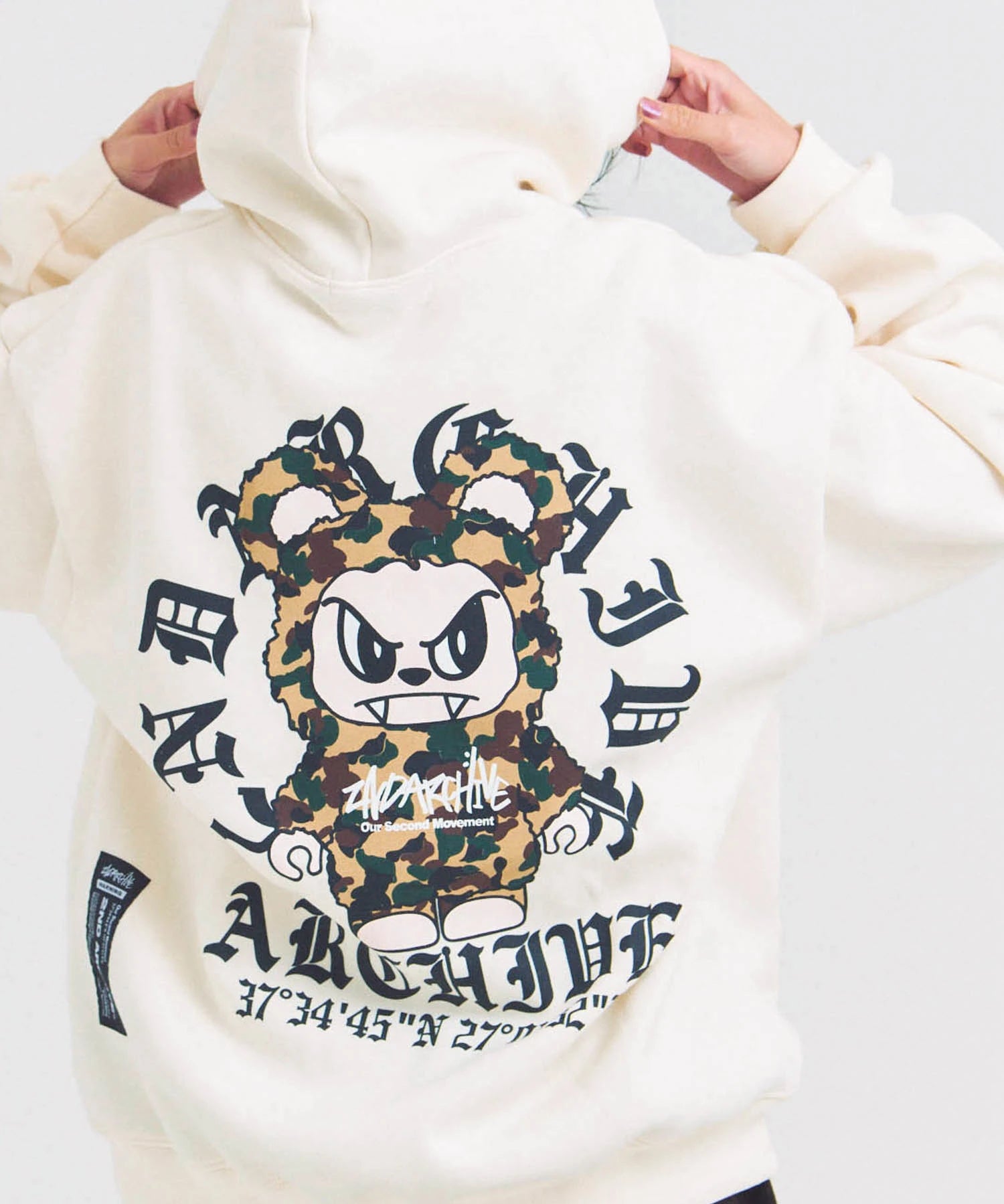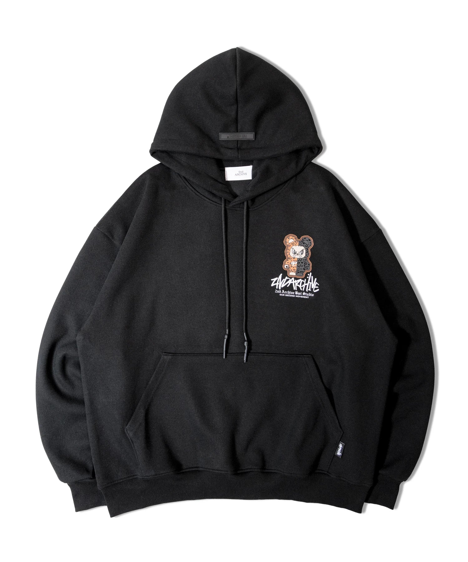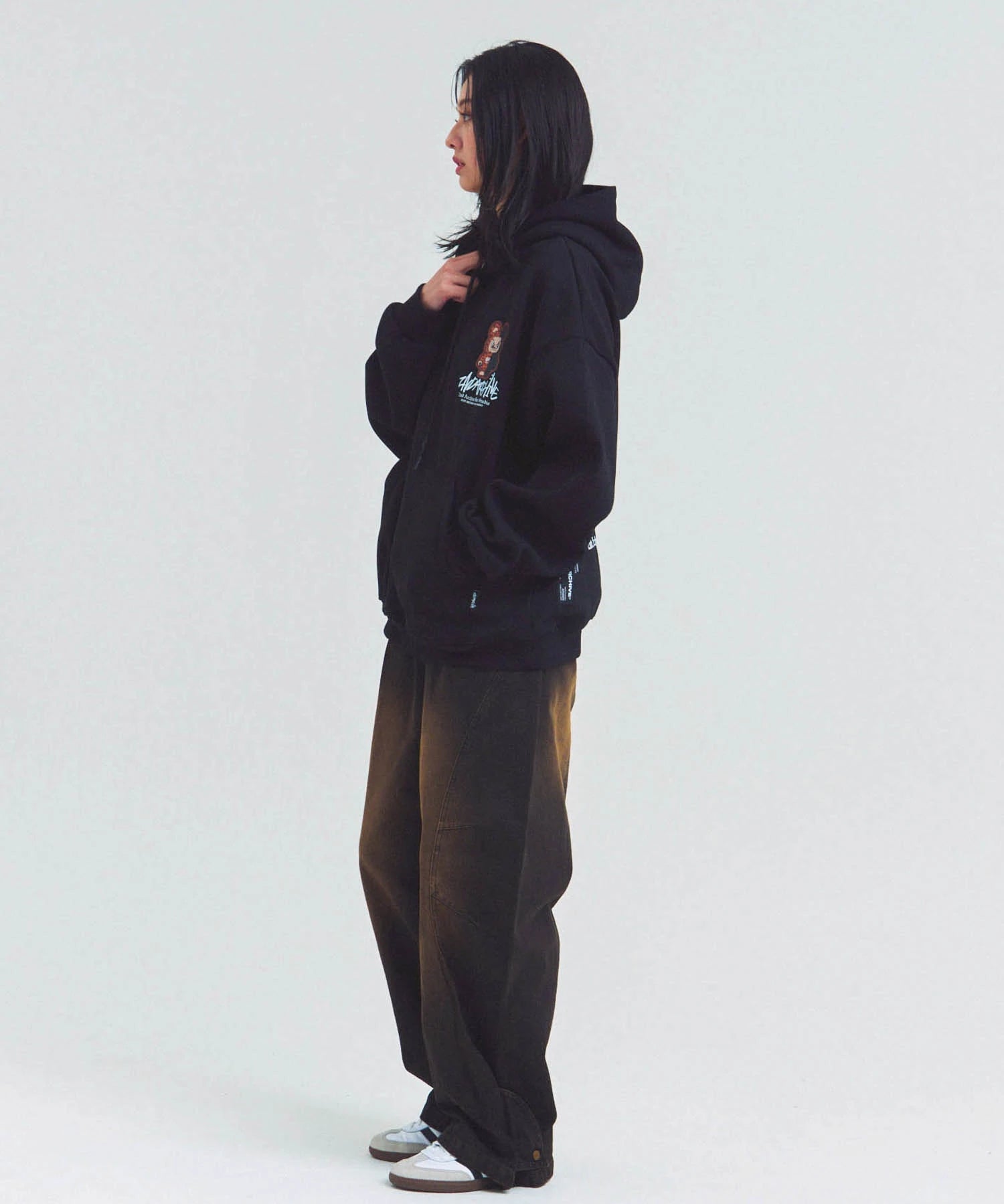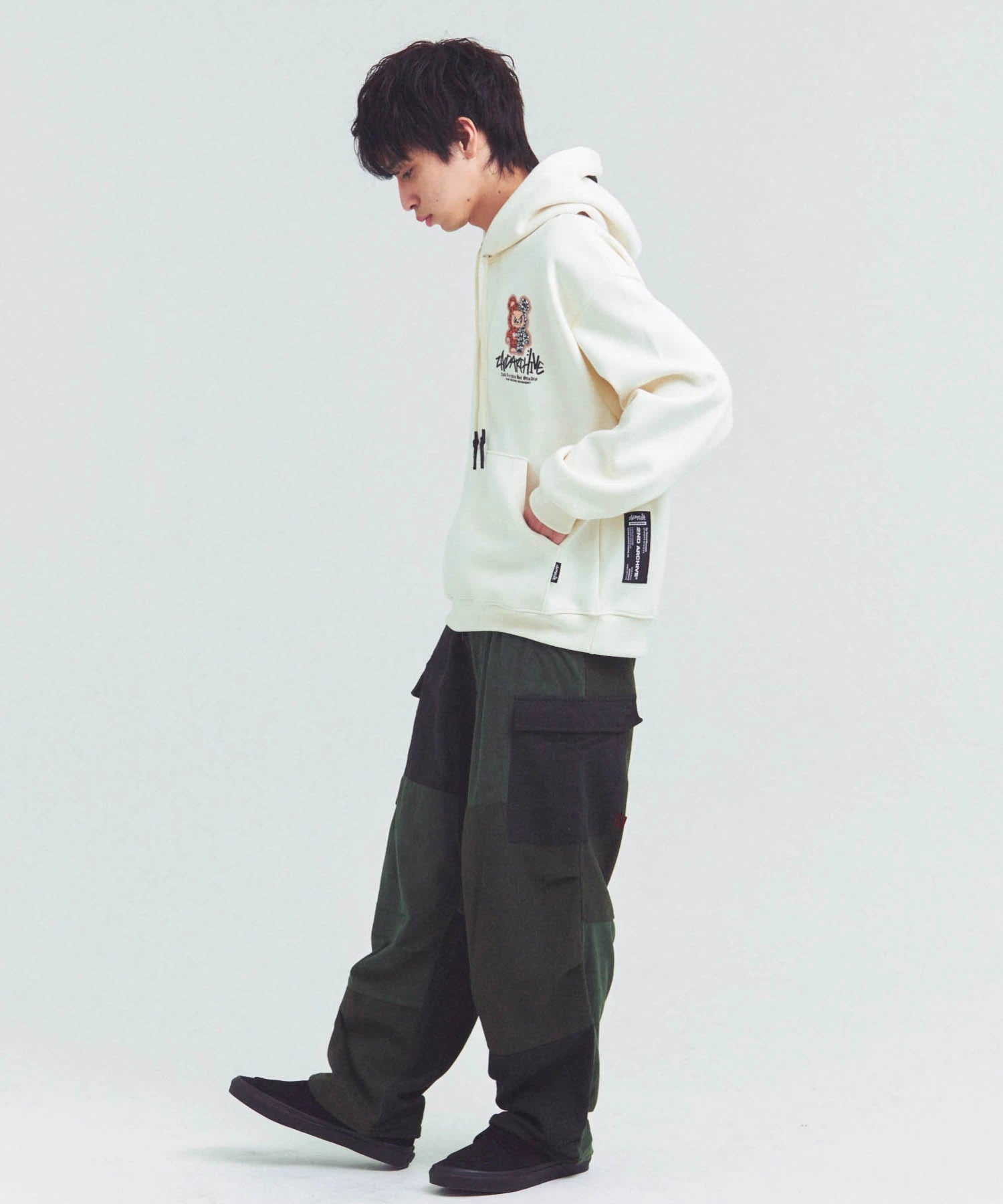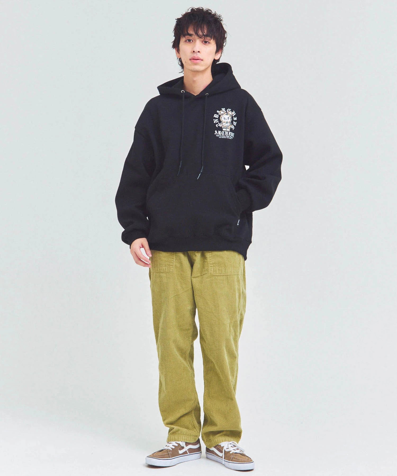 韓国発ストリートブランドらしい大胆なグラフィックをフロントに配したプルオーバーパーカー。