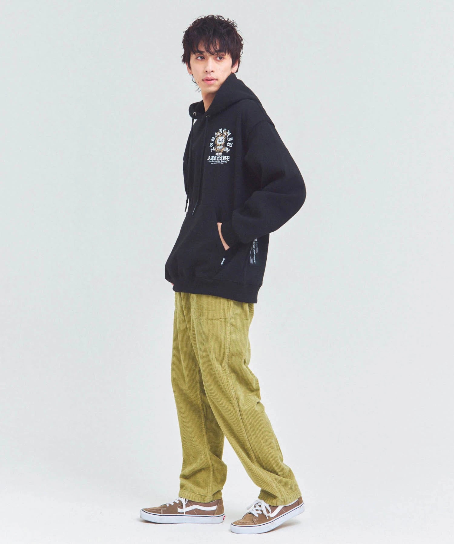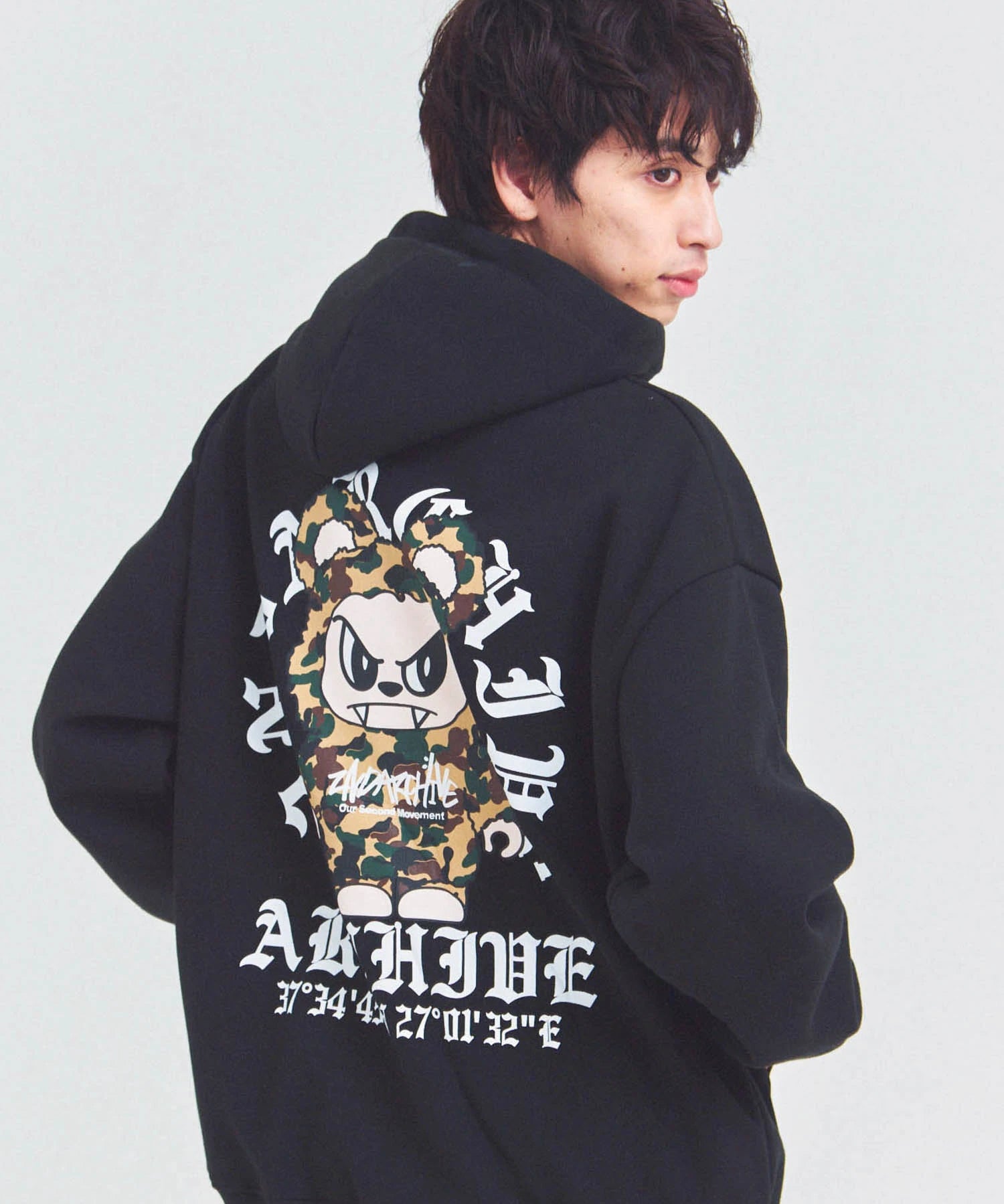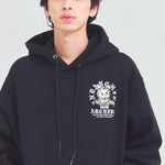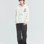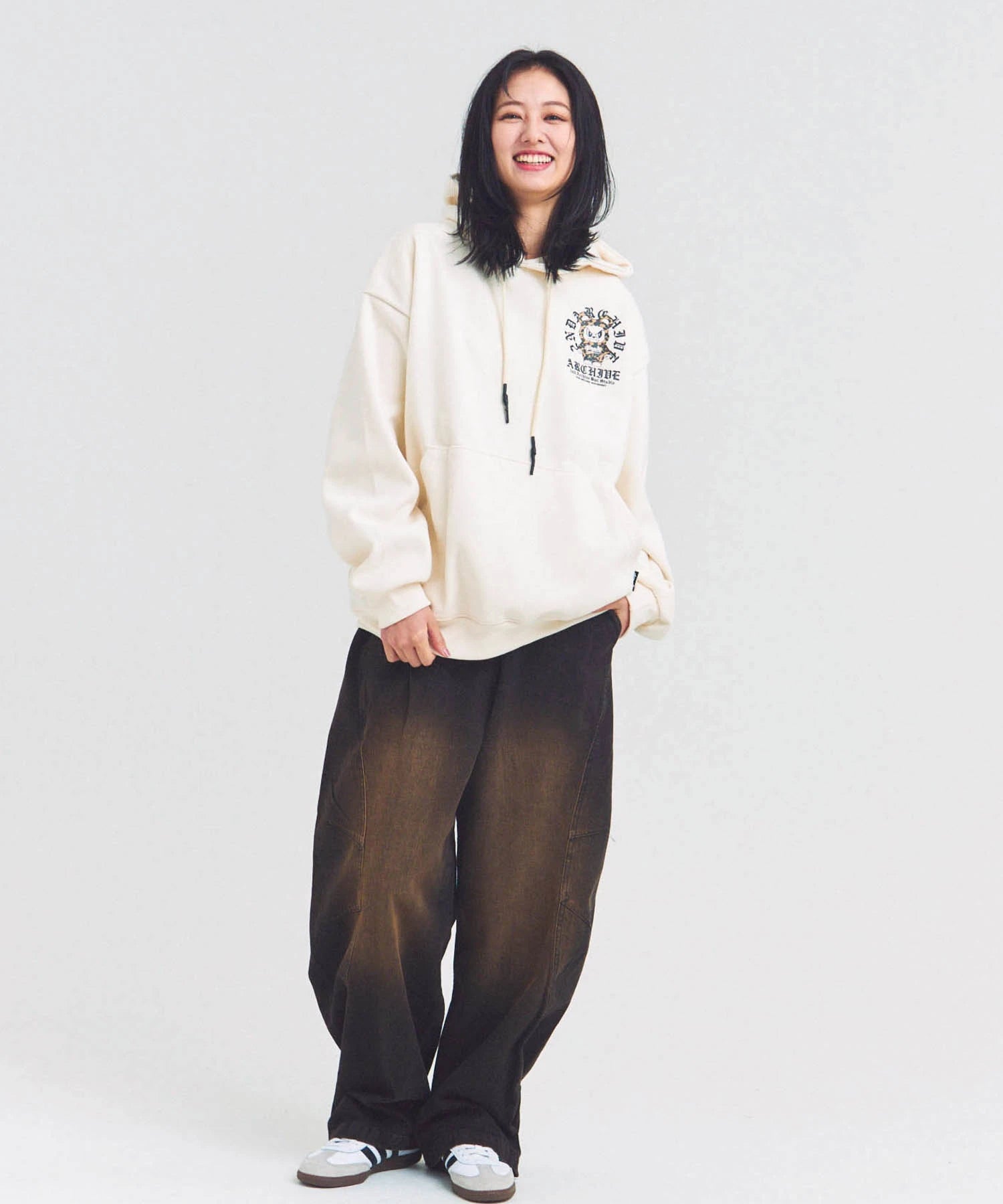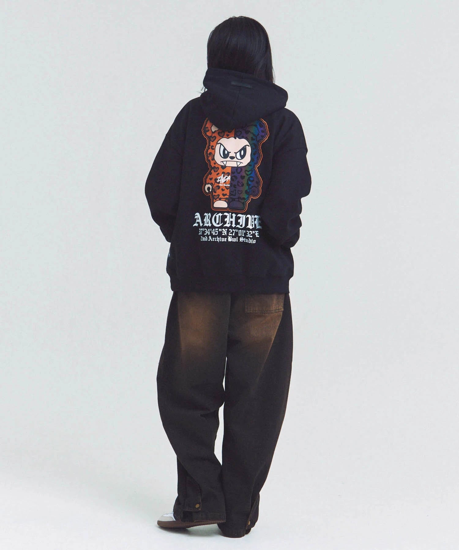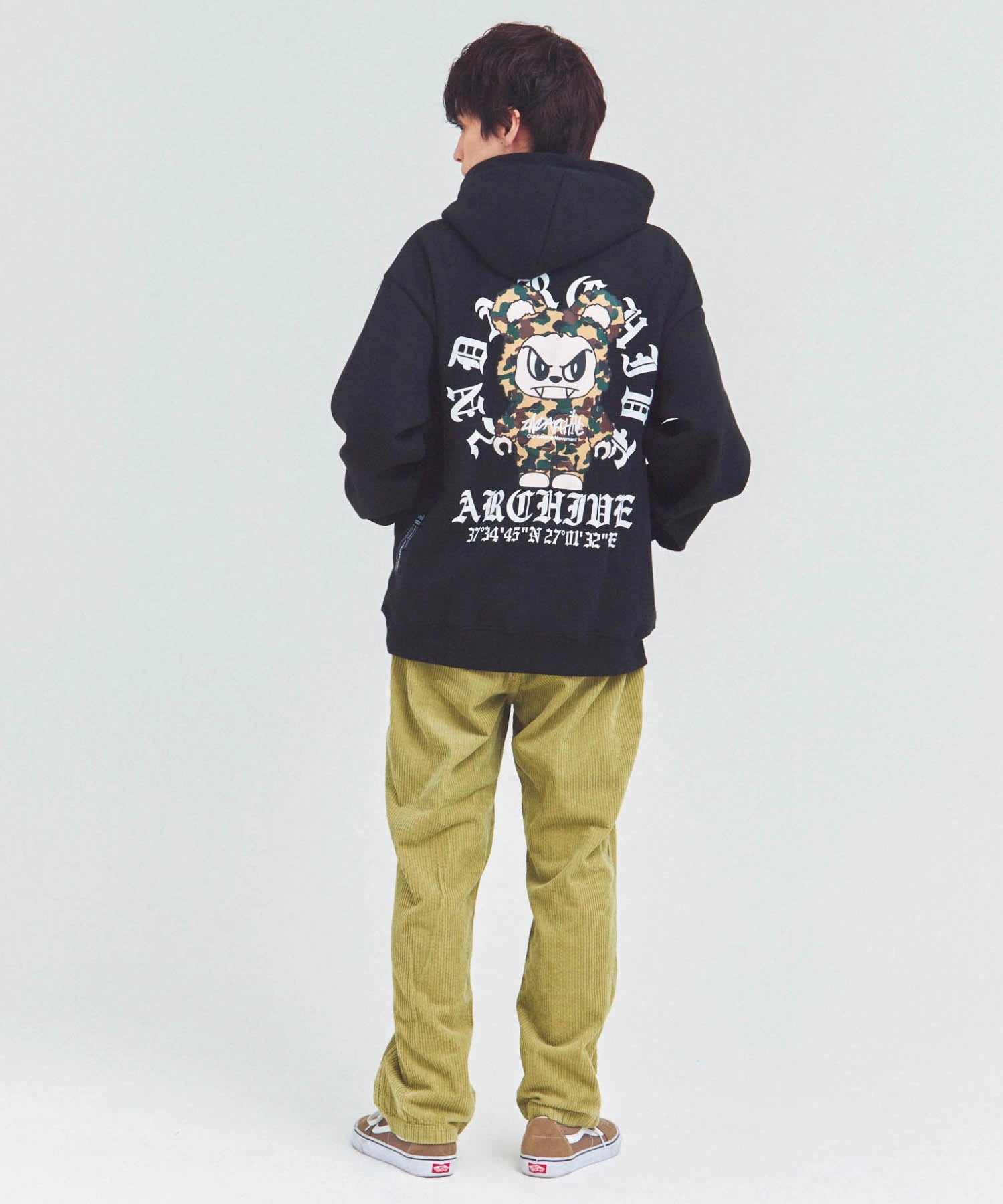 韓国発ストリートブランドらしい大胆なグラフィックをフロントに配したプルオーバーパーカー。