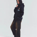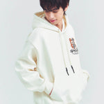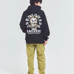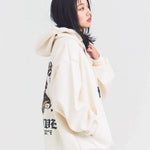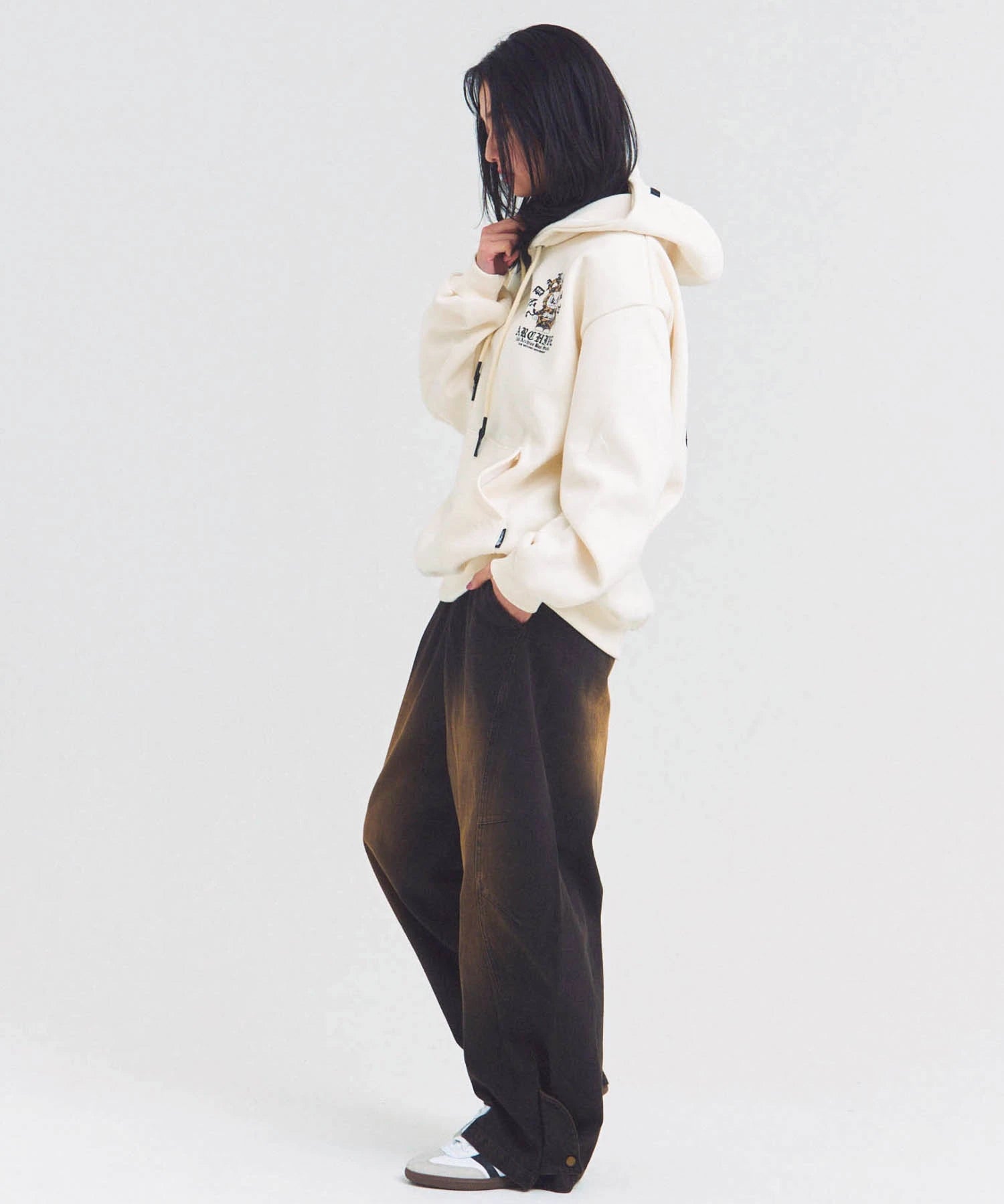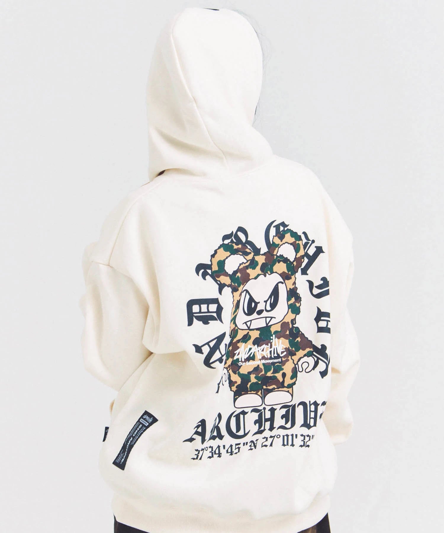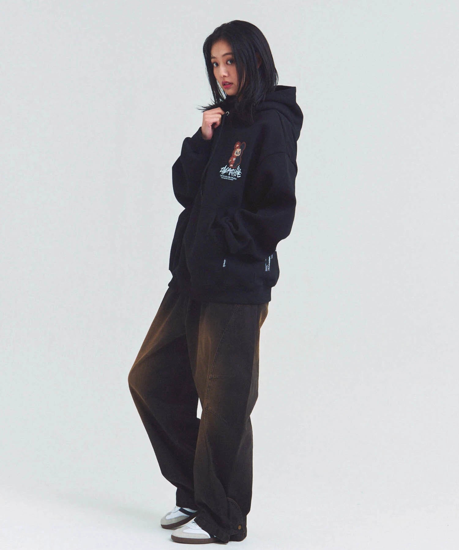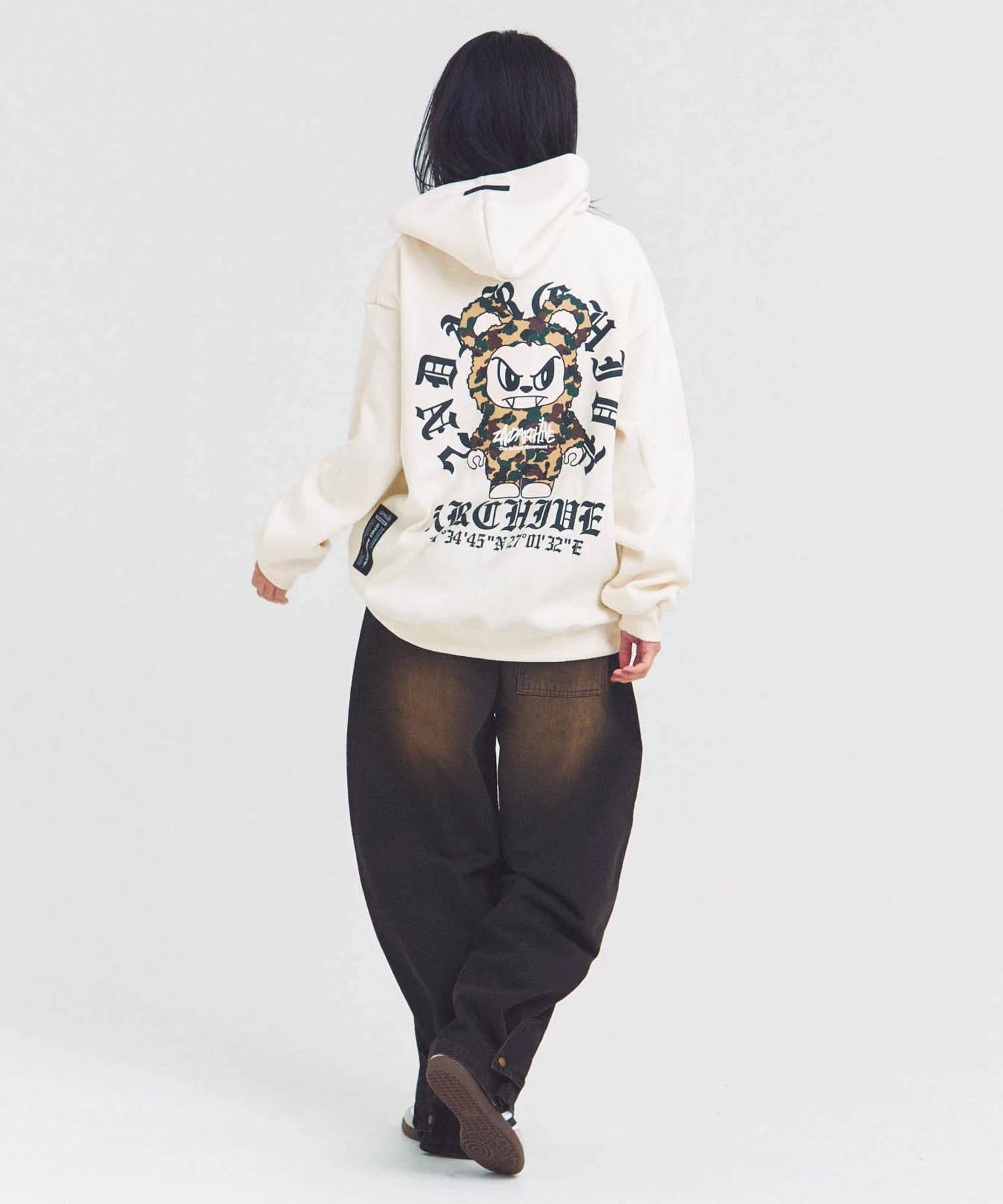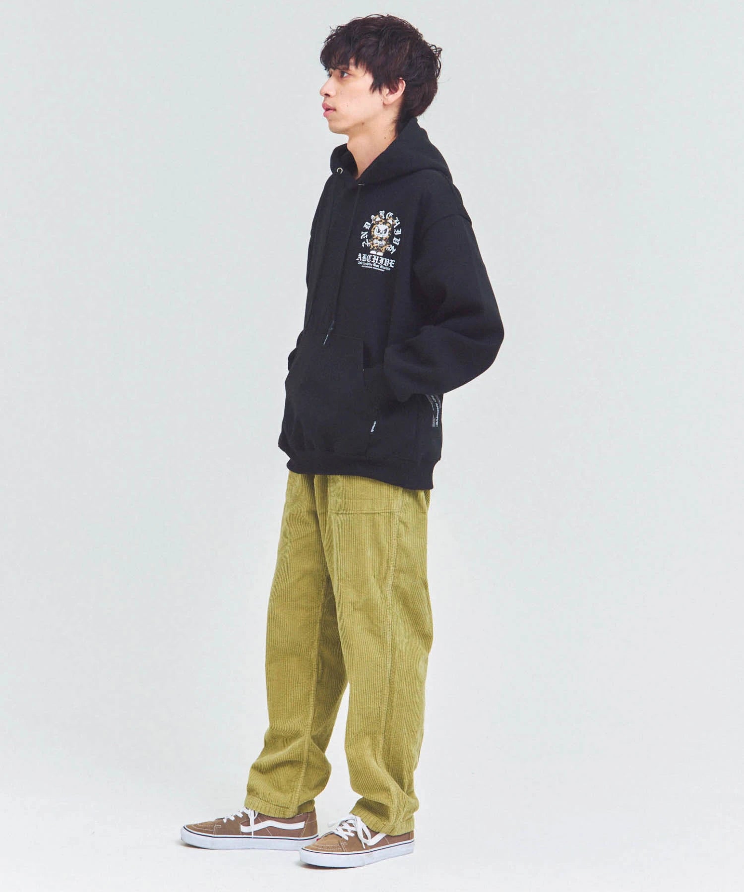 韓国発ストリートブランドらしい大胆なグラフィックをフロントに配したプルオーバーパーカー。